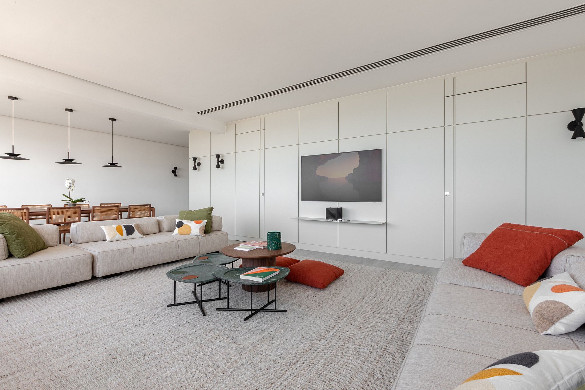 The apartment features 2 elegant suites and 3 bathrooms, comfortably accommodating up to 4 guests. Natural light and the endless ocean view make every moment a unique experience.