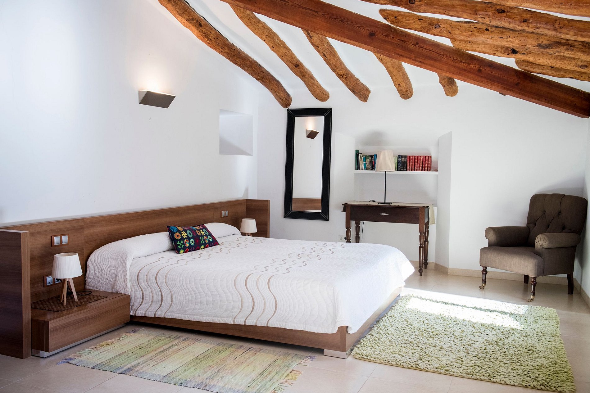 The spacious two-level layout of this villa accommodates up to ten guests with five en-suite bedrooms, each with private bathrooms. With two spacious living areas and a dining hall, the house is perfect for groups or families. In the interior of the finca the guest will find a perfect combination of modern and rustic elements.