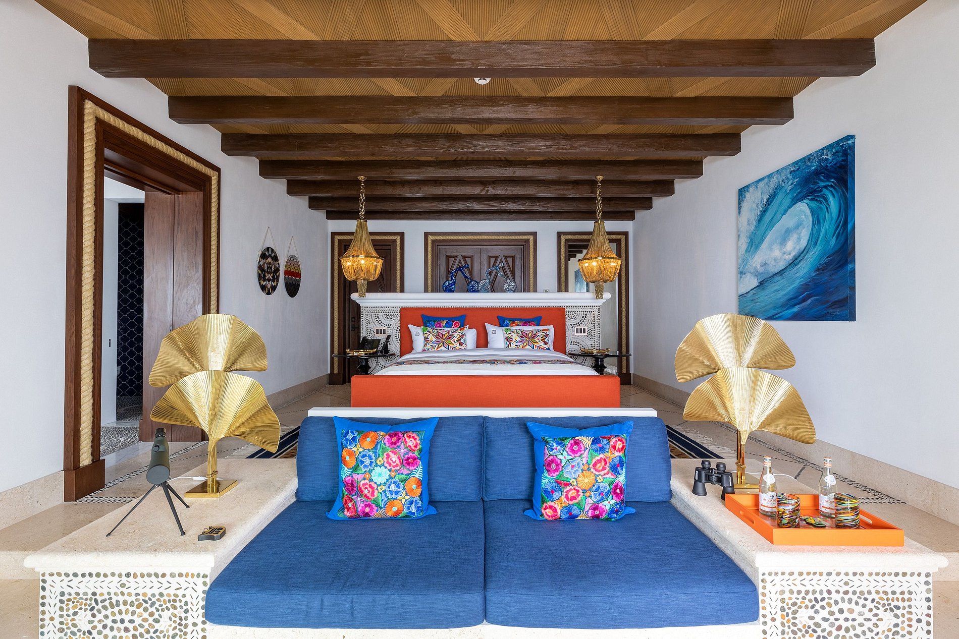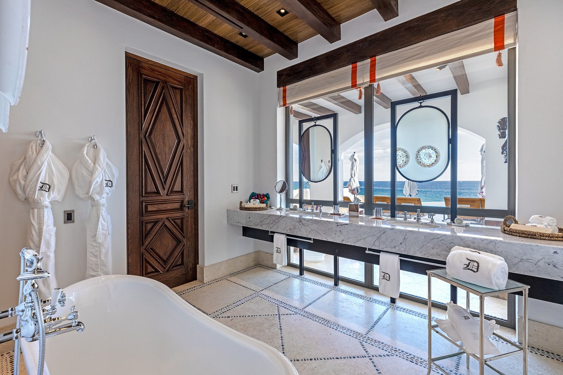 The villa has 10 bedrooms and 12 bathrooms, designed in a bright Mexican-American style and includes its own private bathroom and closet.