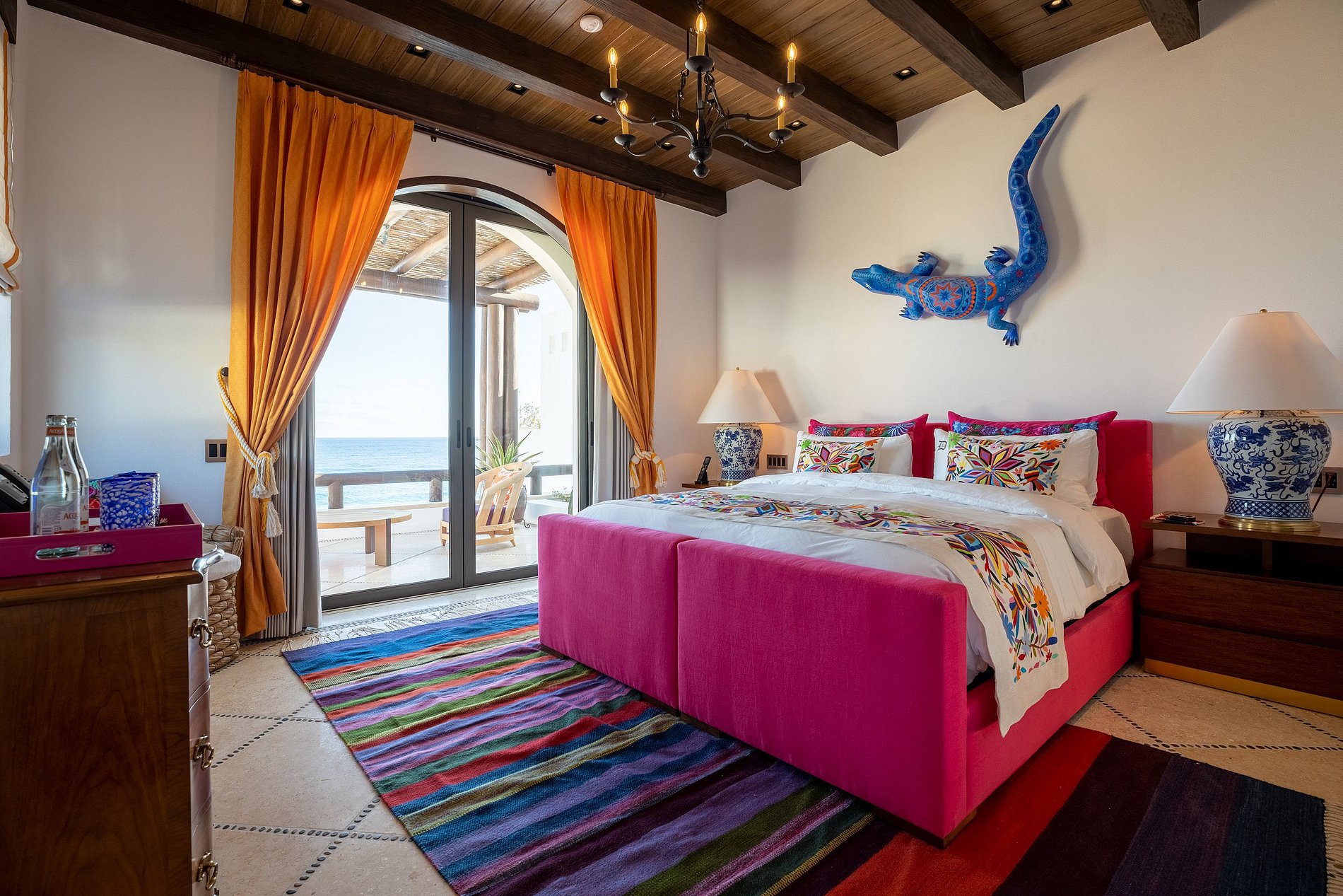 The villa has 10 bedrooms and 12 bathrooms, designed in a bright Mexican-American style and includes its own private bathroom and closet.