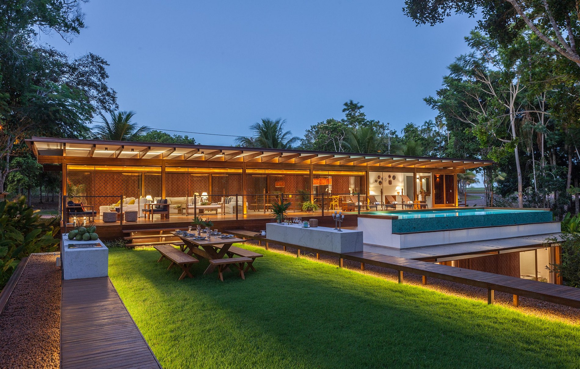 In the second pavilion, just below the lounge area, there are 4 other suites with views of the forest and the tropical garden. The suites are accessible by a large covered veranda overlooking the garden and the forest.