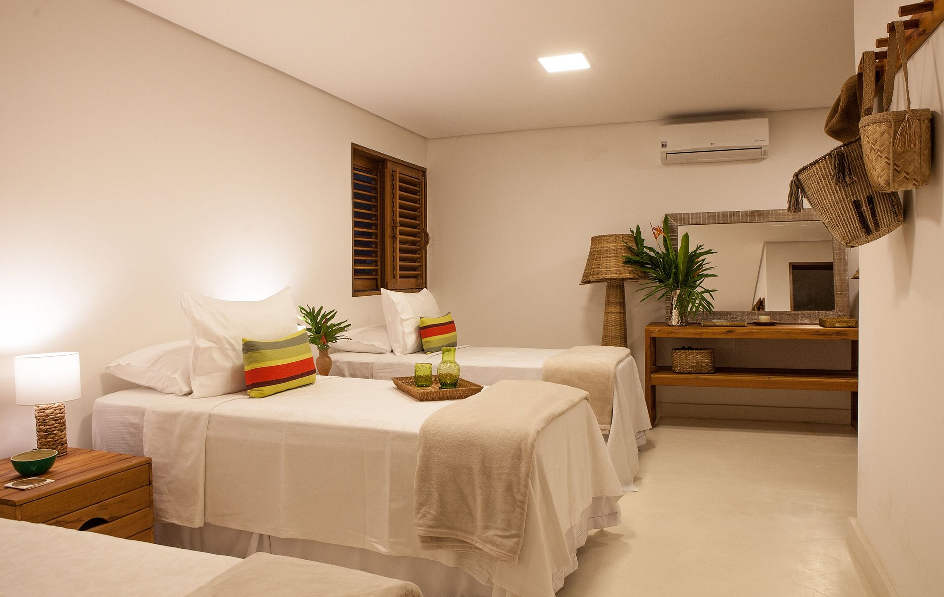 Going down a few steps you will find the 1st bedroom with 3 beds and a lounge area with hammocks, mats and cushions, new place to relax, read or rest.