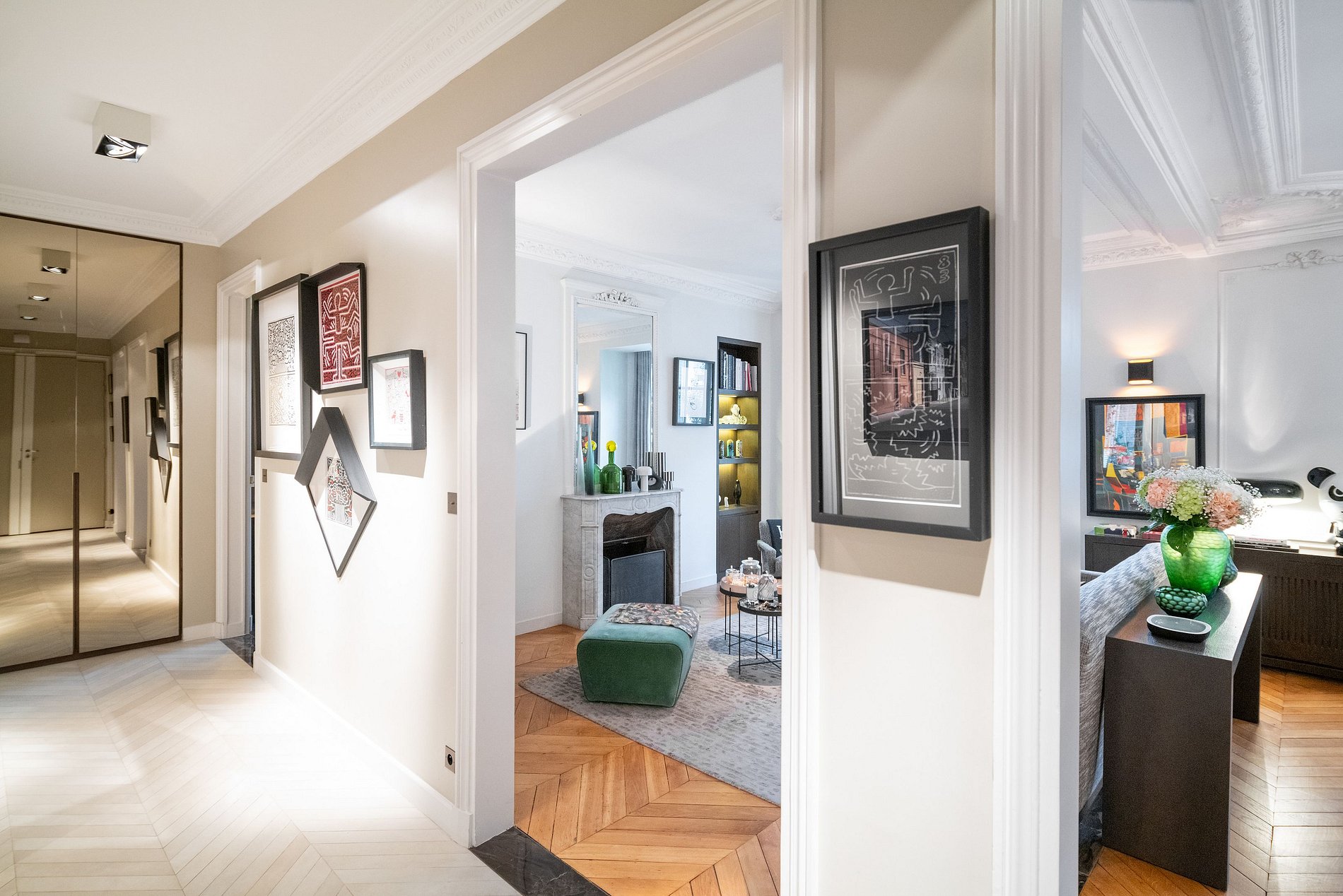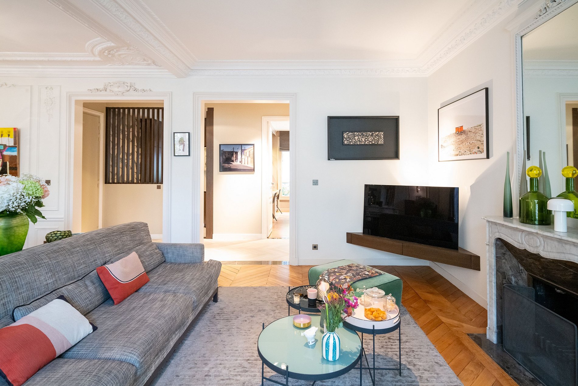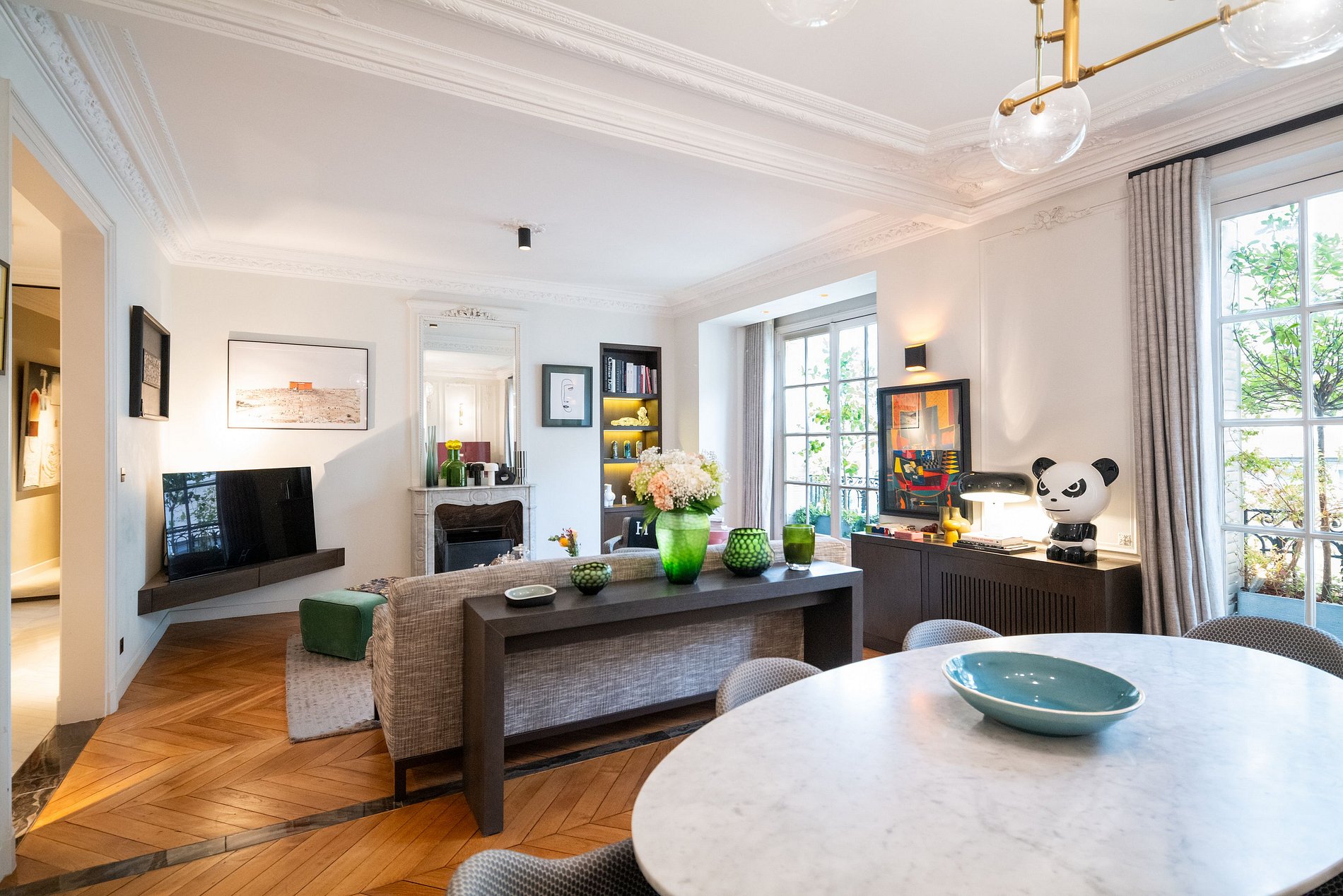 Immerse yourself in the elegance of a luxury apartment meticulously renovated by a renowned Parisian decorator, nestled in the heart of the City of Light.