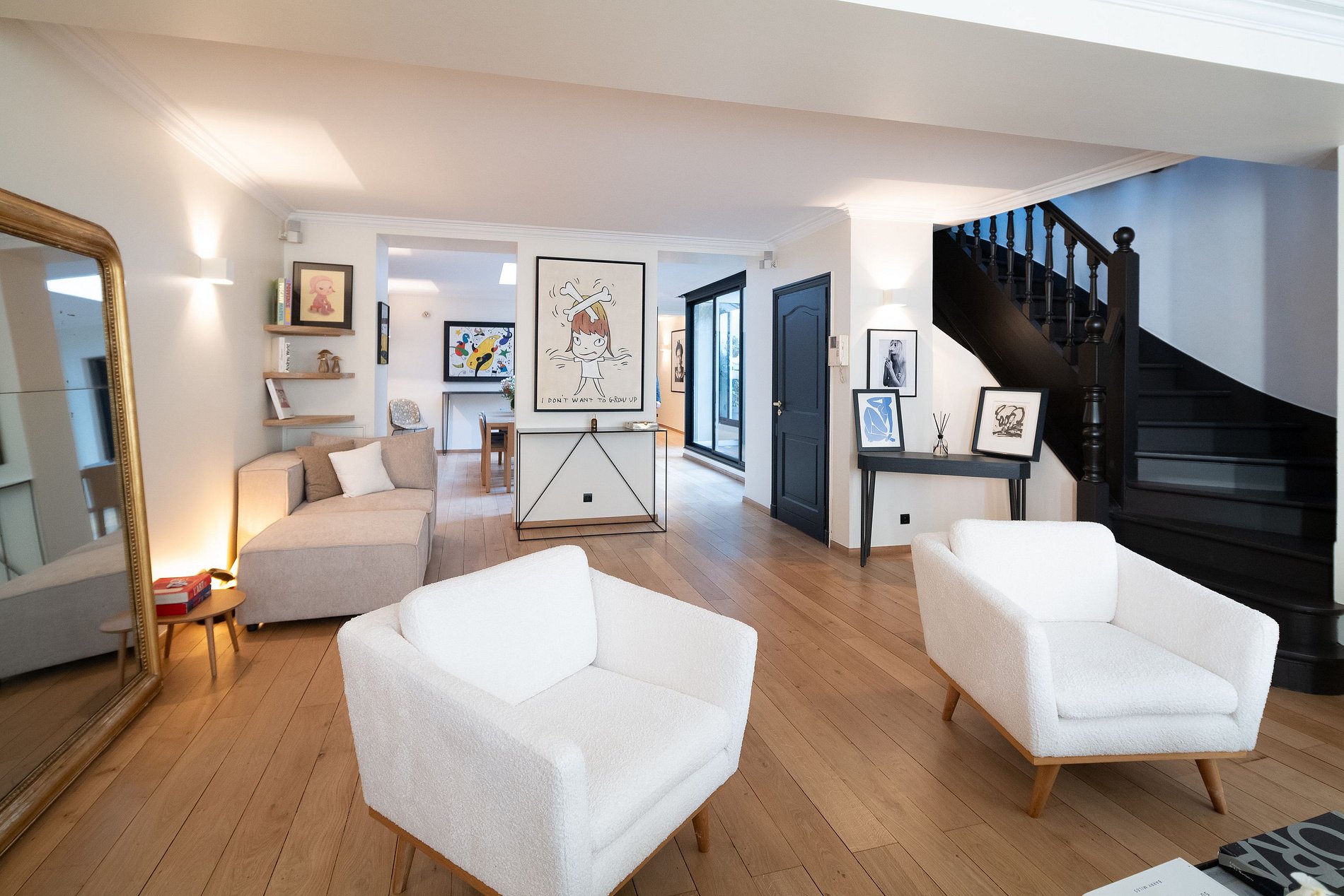 Each room in this beautifully decorated house has been curated to create an atmosphere of refined comfort and luxury. Located in the picturesque Auteuil neighborhood, this home stands in close proximity to the verdant Bois de Boulogne, the prestigious Roland Garros, and numerous other facilities, ensuring you are at the heart of the excitement while retaining a peaceful retreat.