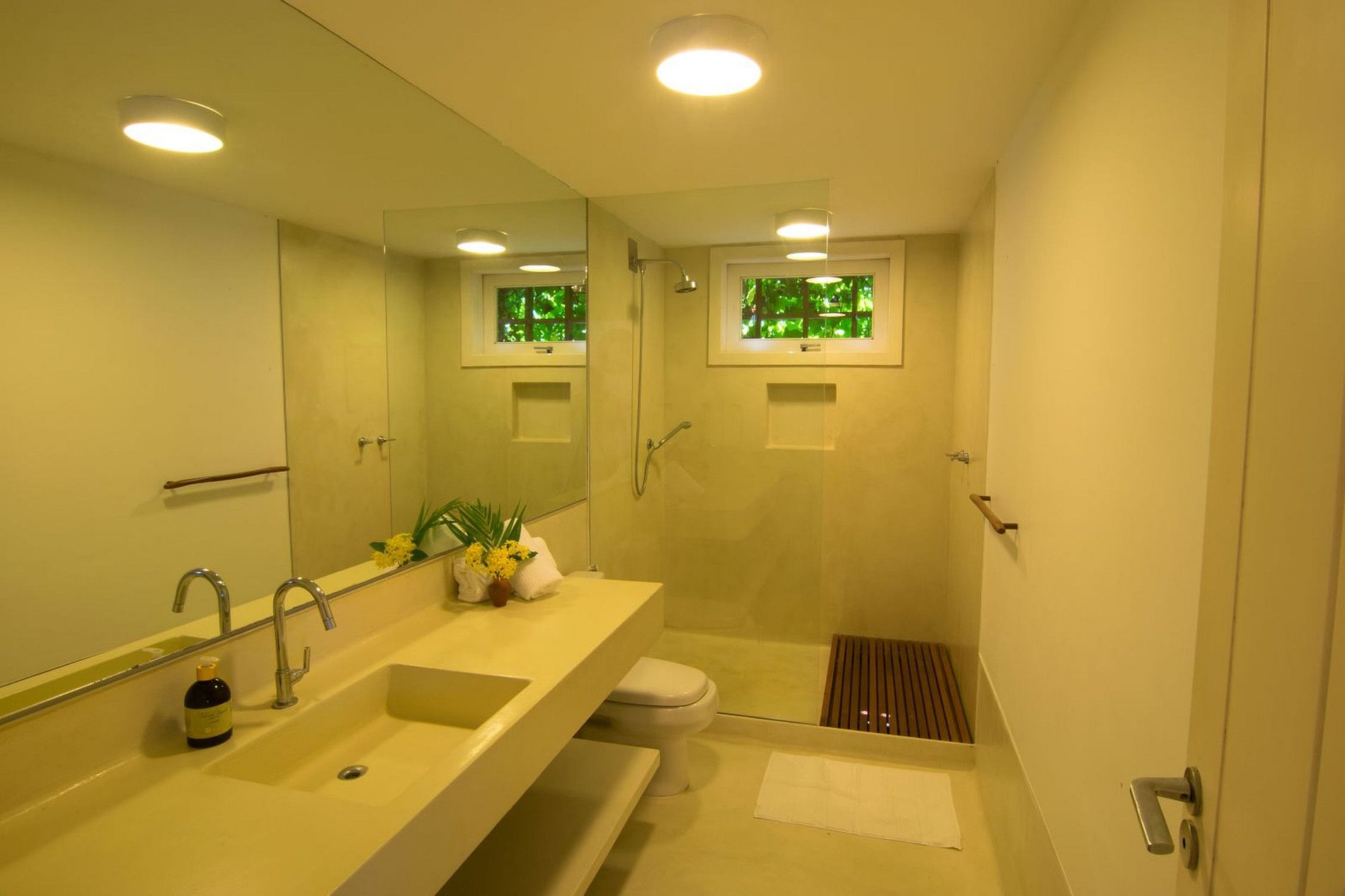 Enjoy the wondrous panorama of sea, sky, and forest from your rooms, the large living room, garden kiosk, pool, hammocks, or hardwood bench stood in the shadow of the long tropical trees. The house is designed to take full advantage of the view: On your left the almost desert beach of Prainha, on your right São José private beach, reserved for the few villas owners of this huge preserved area.