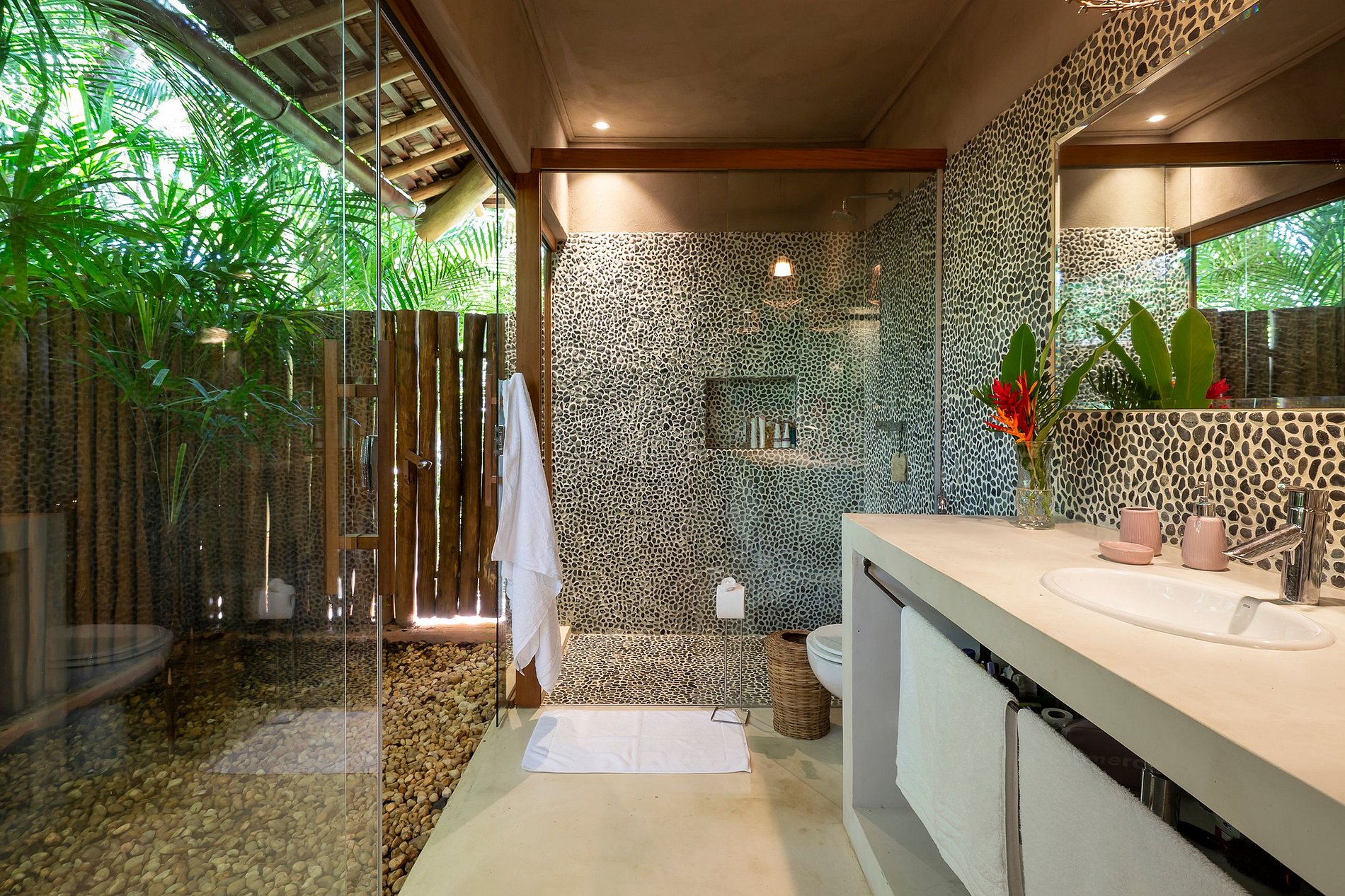Located in a luxury condominium, the residence is just 500 meters from the iconic Quadrado de Trancoso, combining privacy with convenient access to local charms. The main house is equipped with two modern kitchens, a stylish bar, and cozy living and social areas, including an 80-inch Smart TV.