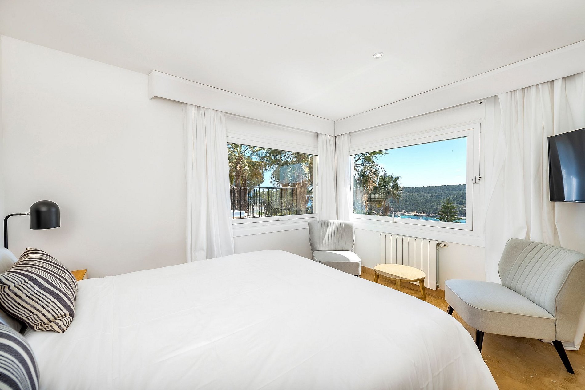 The villa is located in the southwest of the island, overlooking the small harbor and the turquoise bay of Portals Vells . It has many small terraces that offer amazing panoramic views.