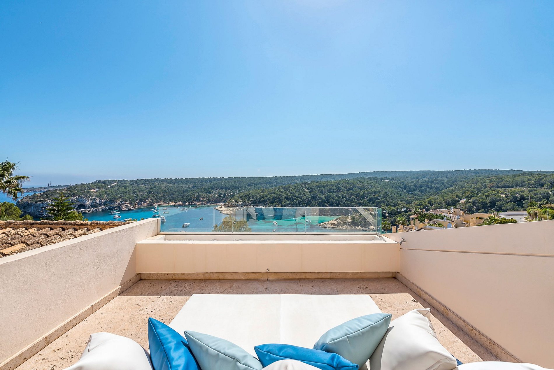 The villa is located in the southwest of the island, overlooking the small harbor and the turquoise bay of Portals Vells . It has many small terraces that offer amazing panoramic views.
