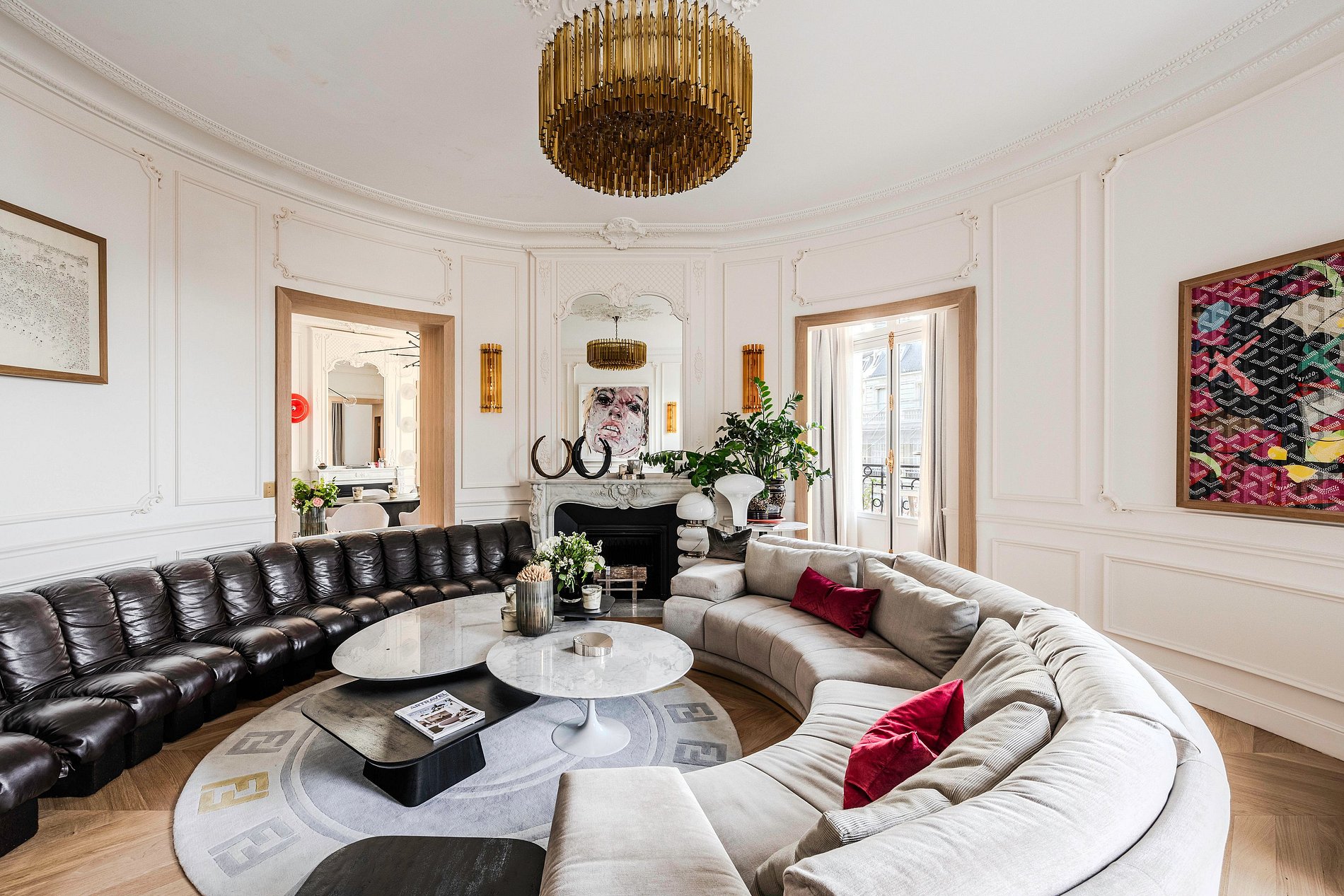 Upon entry, one is greeted in a very elegant vestibule that harmoniously leads to the reception areas and the sleeping quarters, demonstrating the exceptional refinement of the ensemble.