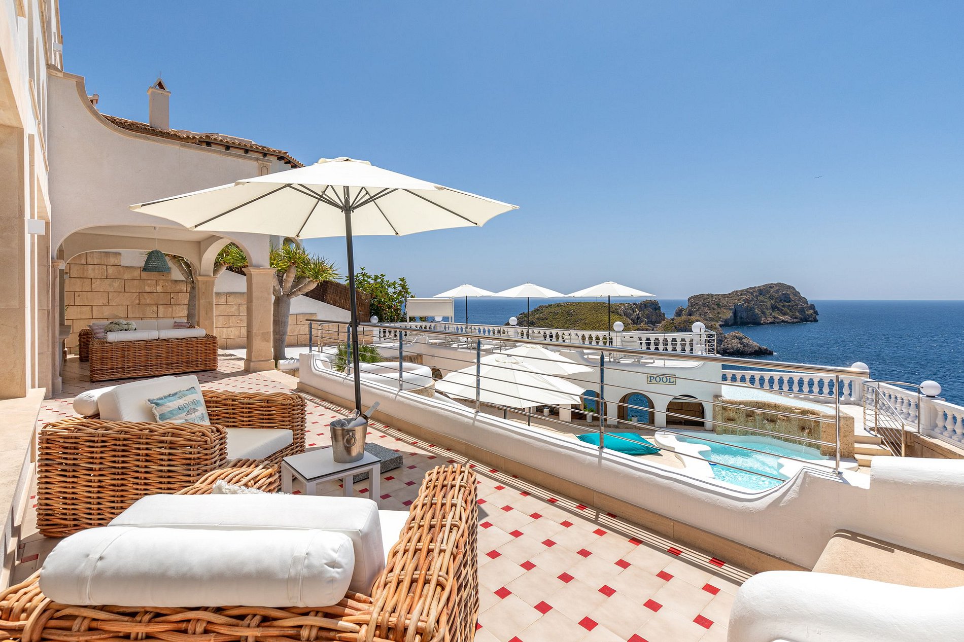 Villa has some special outdoor highlights to offer such as a private sandy beach with sea access and a secluded grotto with beach bar which are the perfect places to enjoy unforgettable sunsets.