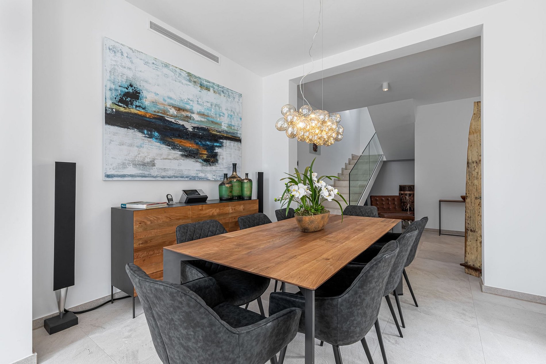 The villa has a fully equipped designer kitchen, TV in all rooms, air conditioning and underfloor heating. Each bedroom has warm, bright colors and modern, high quality design that creates an exceptional climate.