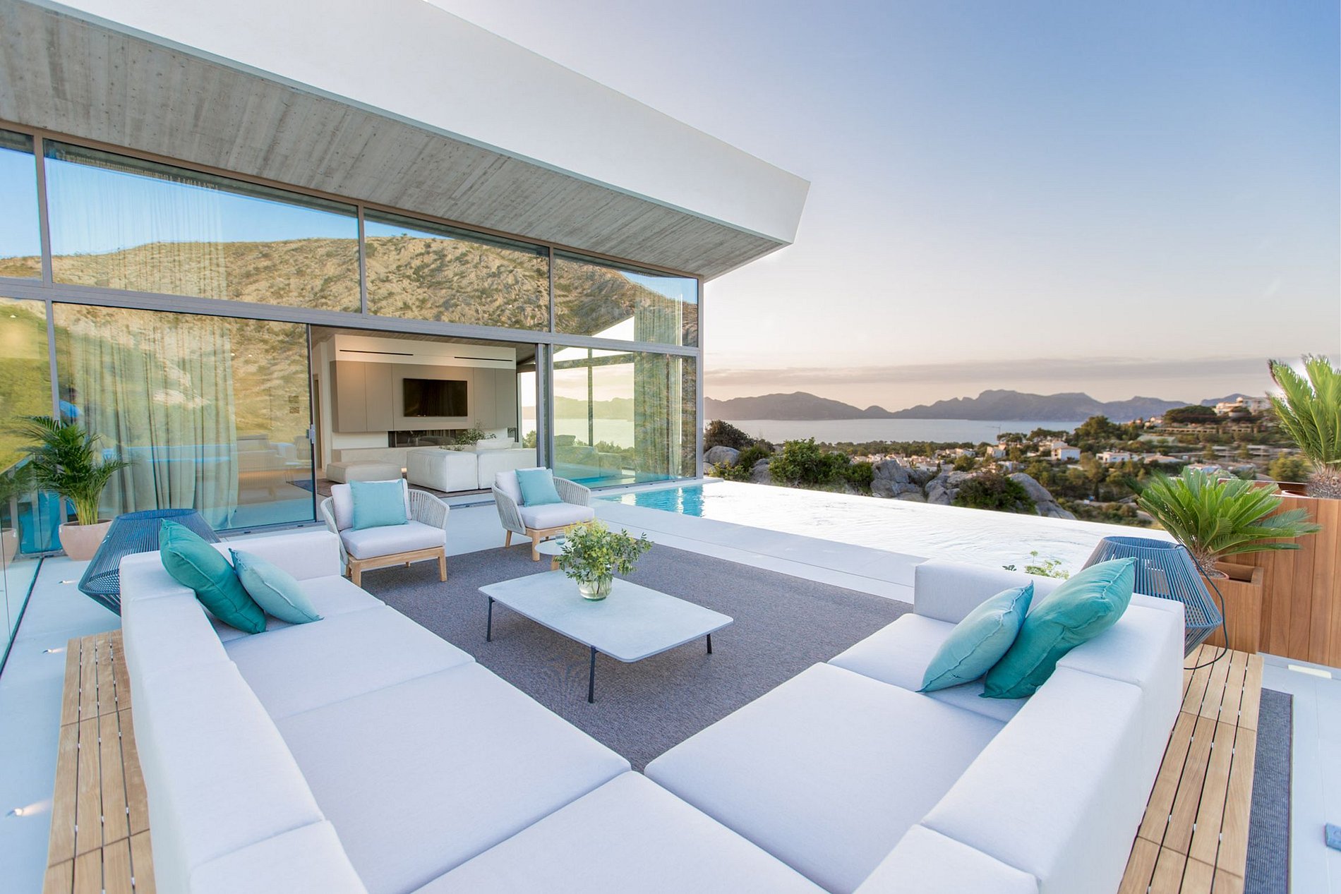 It offers fantastic sea views over the bay of Pollensa and Alcudia due to its location in an upscale residential area.