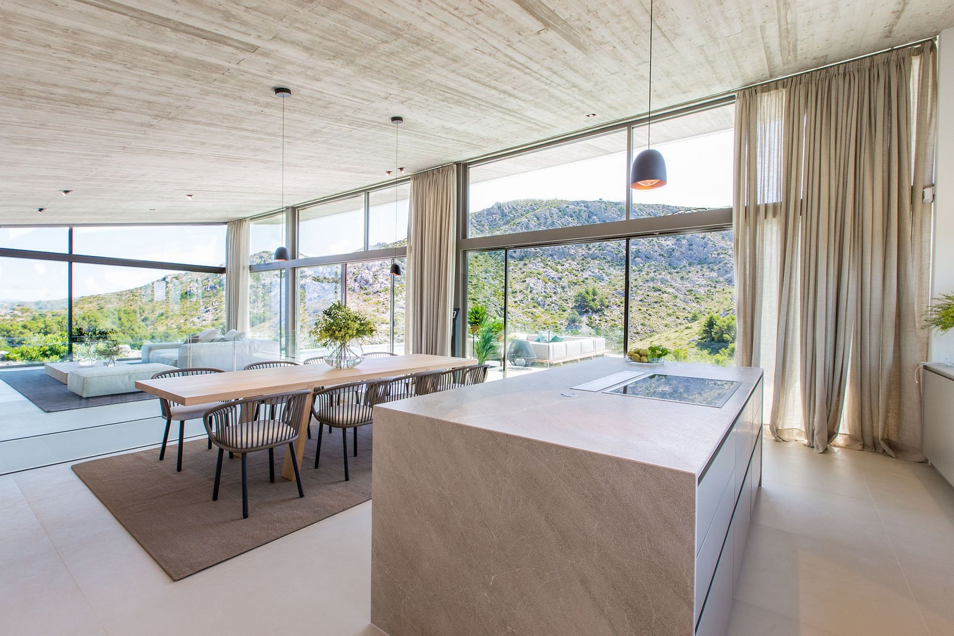 Outside, there is access to a large terrace with a fully equipped outdoor kitchen and one of the two pools.