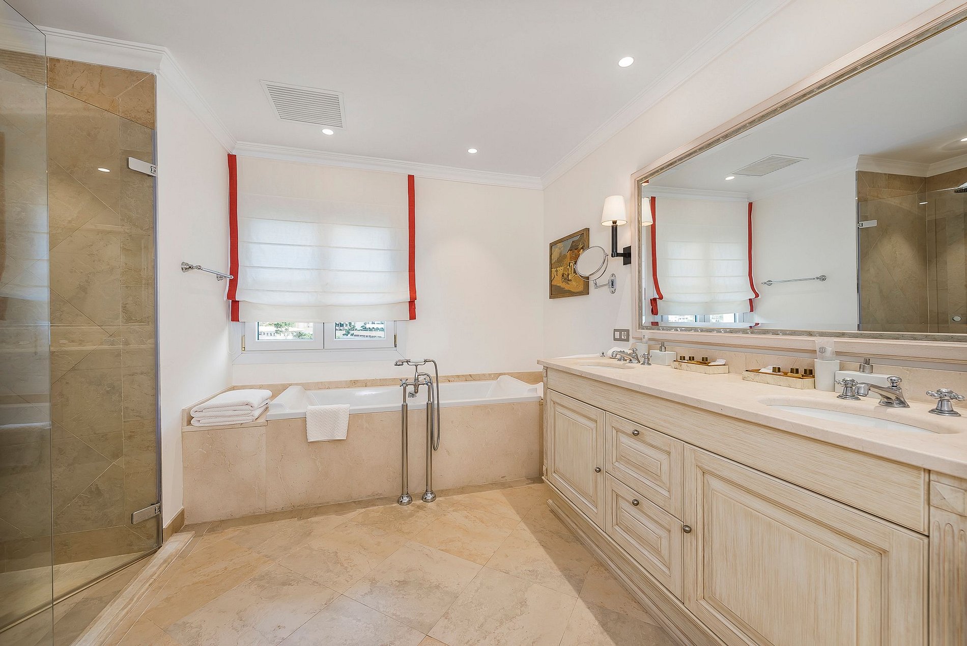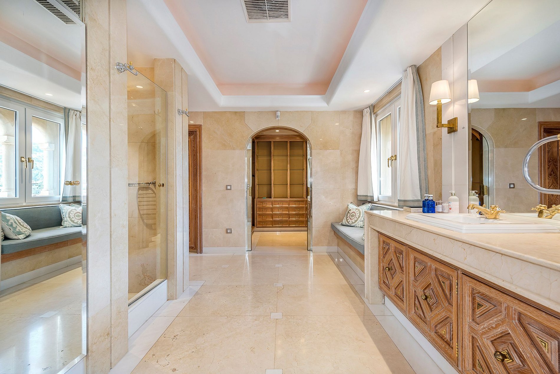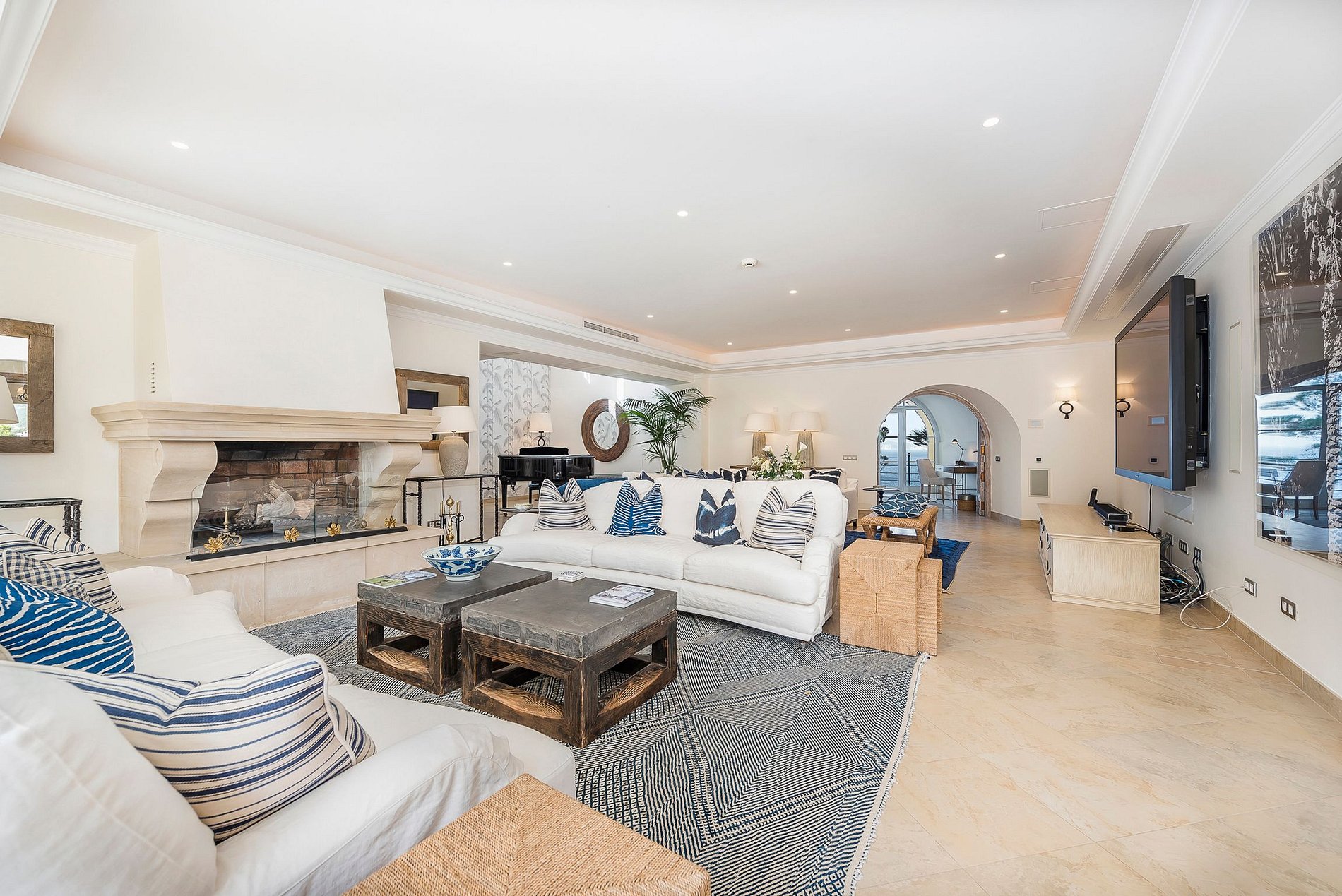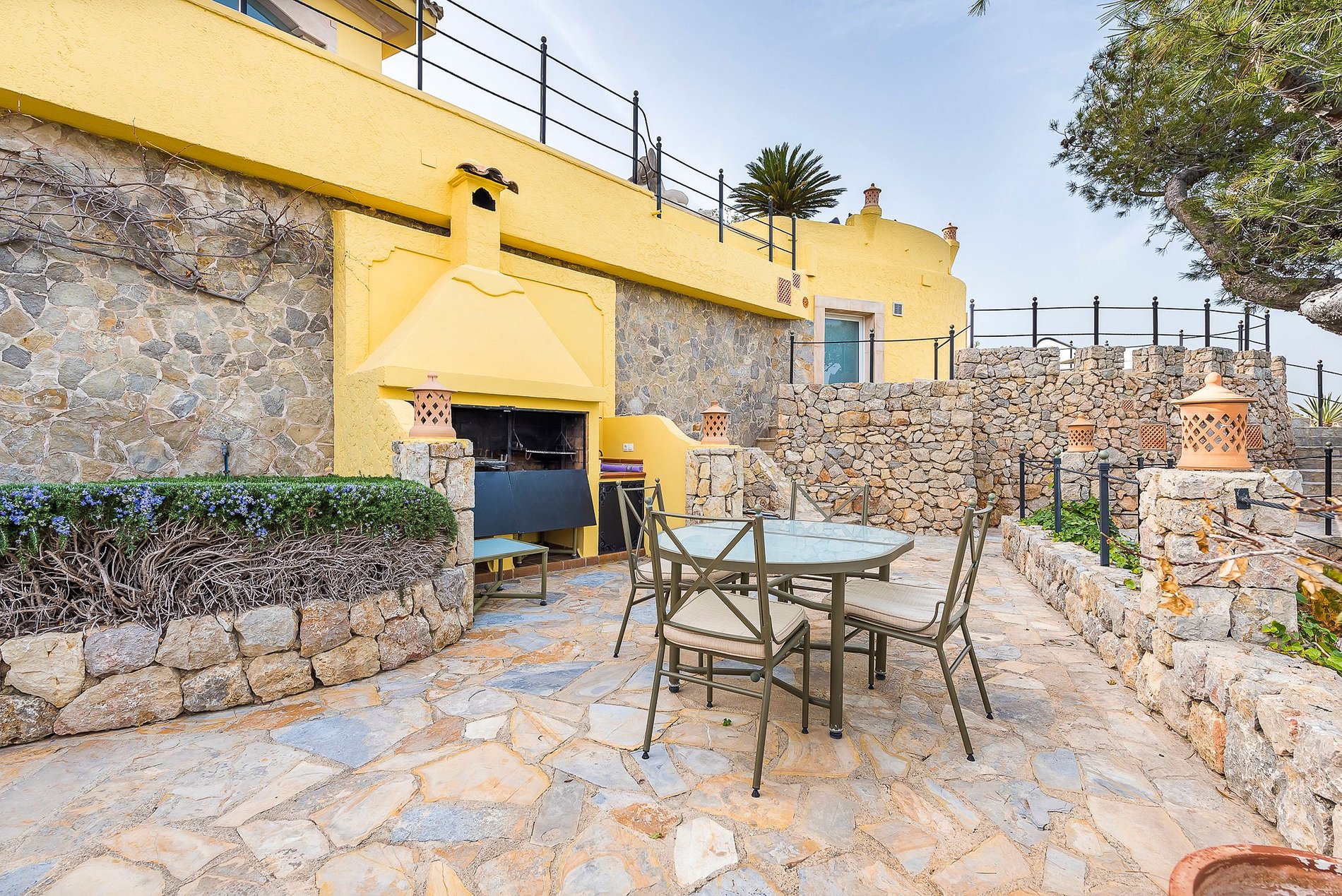 The house can accommodate up to 12 people in its living space of 1000m2. In the comfortably furnished main house there are 3 suites, in one of them, the Lady Di Suite, the "Princess of Hearts" once spent one of her holidays. An open kitchen, a large living room with fireplace and a dining room with a large dining table are located on the pool level. There is a small gym in the basement. A further 3 attractive suites are located in the guest house. A special highlight, a rock grotto can be found at the back of the property. From the pool as well as from the Jacuzzi, guests can enjoy a magnificent view towards the marina and the most beautiful sunsets, very private and exclusive.
