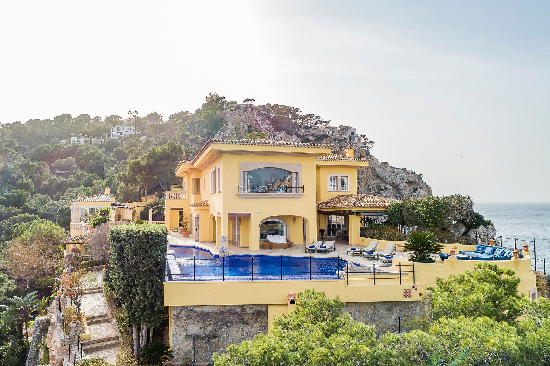 With its panoramic views of the sea, the Puerto de Andratx marina and the Tramuntana Mountains beyond, this is arguably one of the most spectacular properties on Mallorca. The Mediterranean garden leads to the private sea access where guests can enjoy tranquillity and exclusivity.