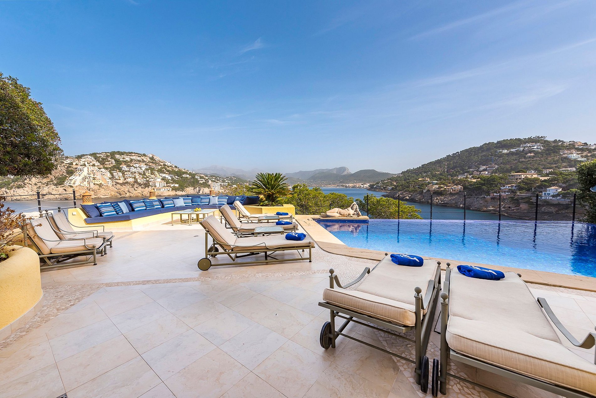 With its panoramic views of the sea, the Puerto de Andratx marina and the Tramuntana Mountains beyond, this is arguably one of the most spectacular properties on Mallorca. The Mediterranean garden leads to the private sea access where guests can enjoy tranquillity and exclusivity.