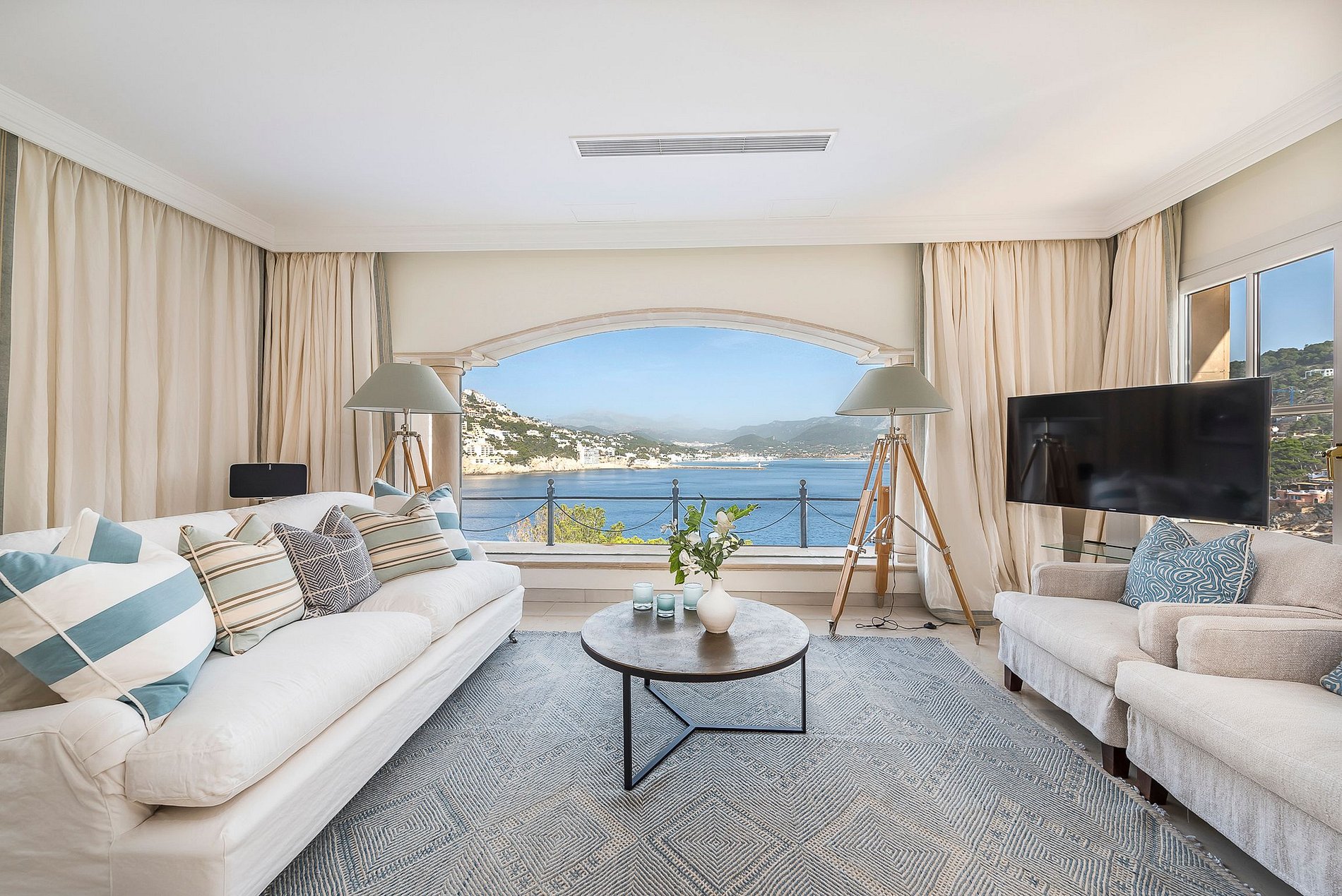 With its panoramic views of the sea, the Puerto de Andratx marina and the Tramuntana Mountains beyond, this is arguably one of the most spectacular properties on Mallorca. The Mediterranean garden leads to the private sea access where guests can enjoy tranquillity and exclusivity.