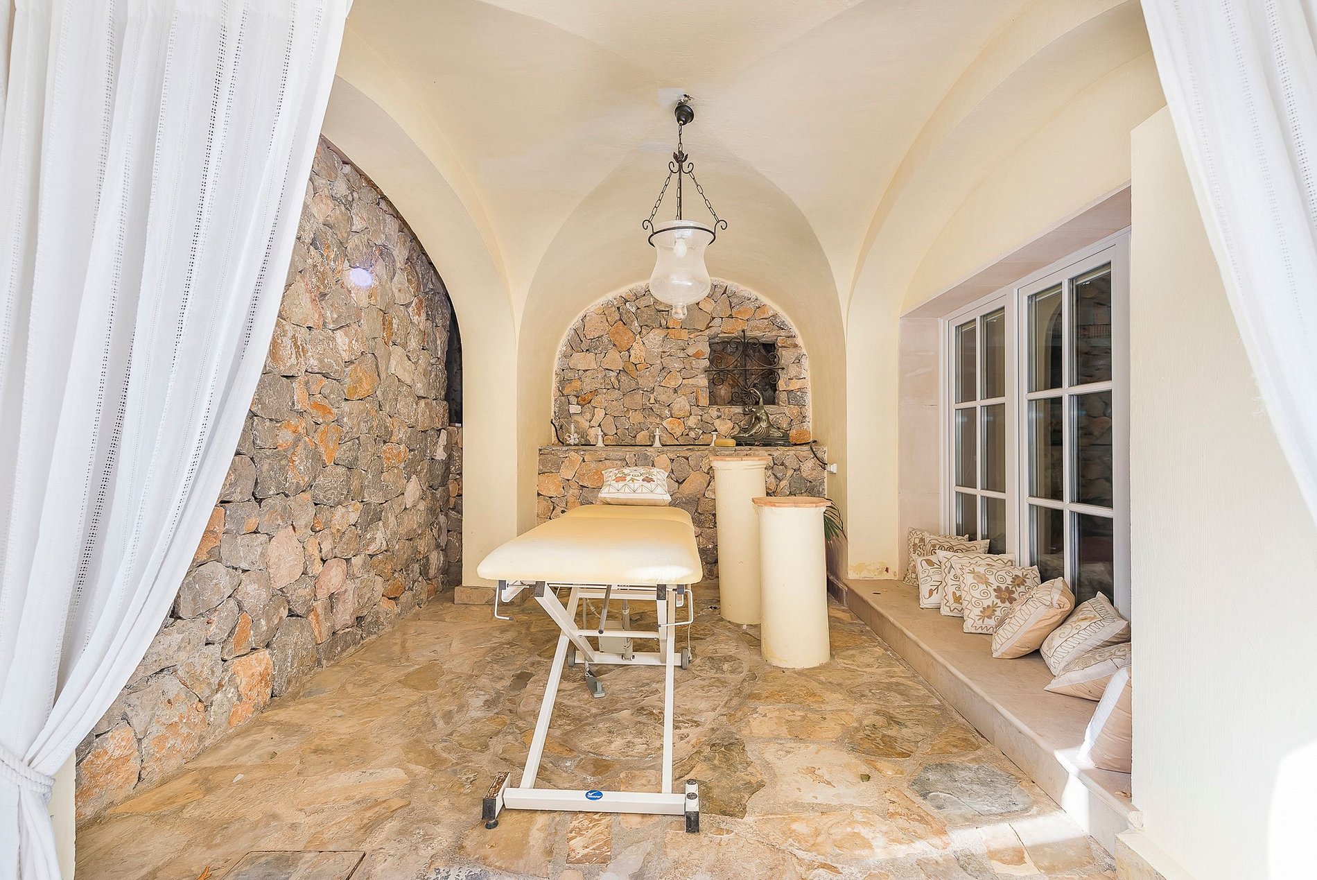 With its panoramic views of the sea, the Puerto de Andratx marina and the Tramuntana Mountains beyond, this is arguably one of the most spectacular properties on Mallorca. The Mediterranean garden leads to the private sea access where guests can enjoy tranquillity and exclusivity.