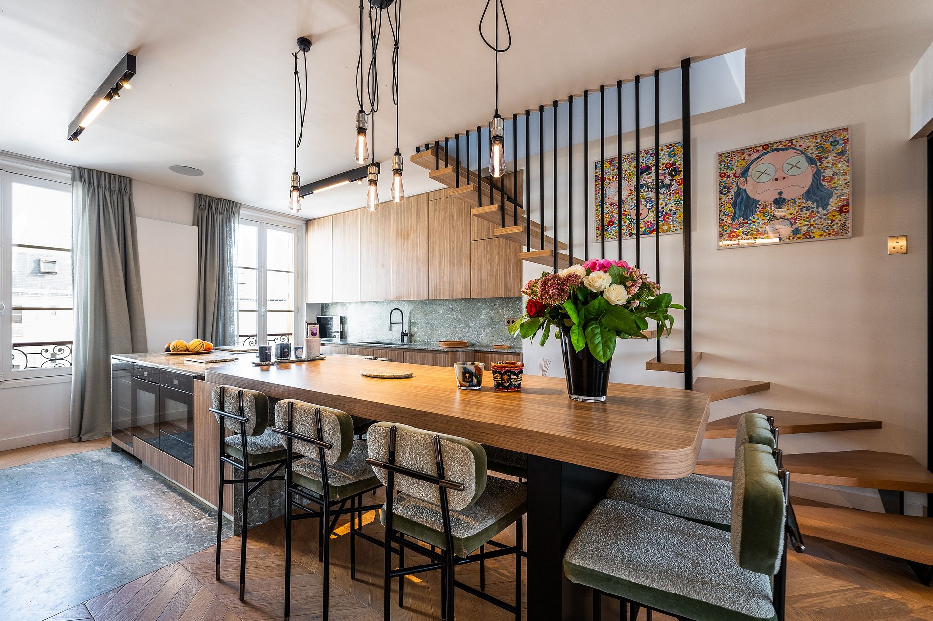 The upper floor is entirely dedicated to a modern gym, allowing for fitness while enjoying the stunning city view. The entire apartment blends grandeur and elegance, with high-quality finishes and meticulous interior design, reflecting the pinnacle of Parisian luxury. This apartment is a true liveable work of art, a jewel in the heart of the capital.