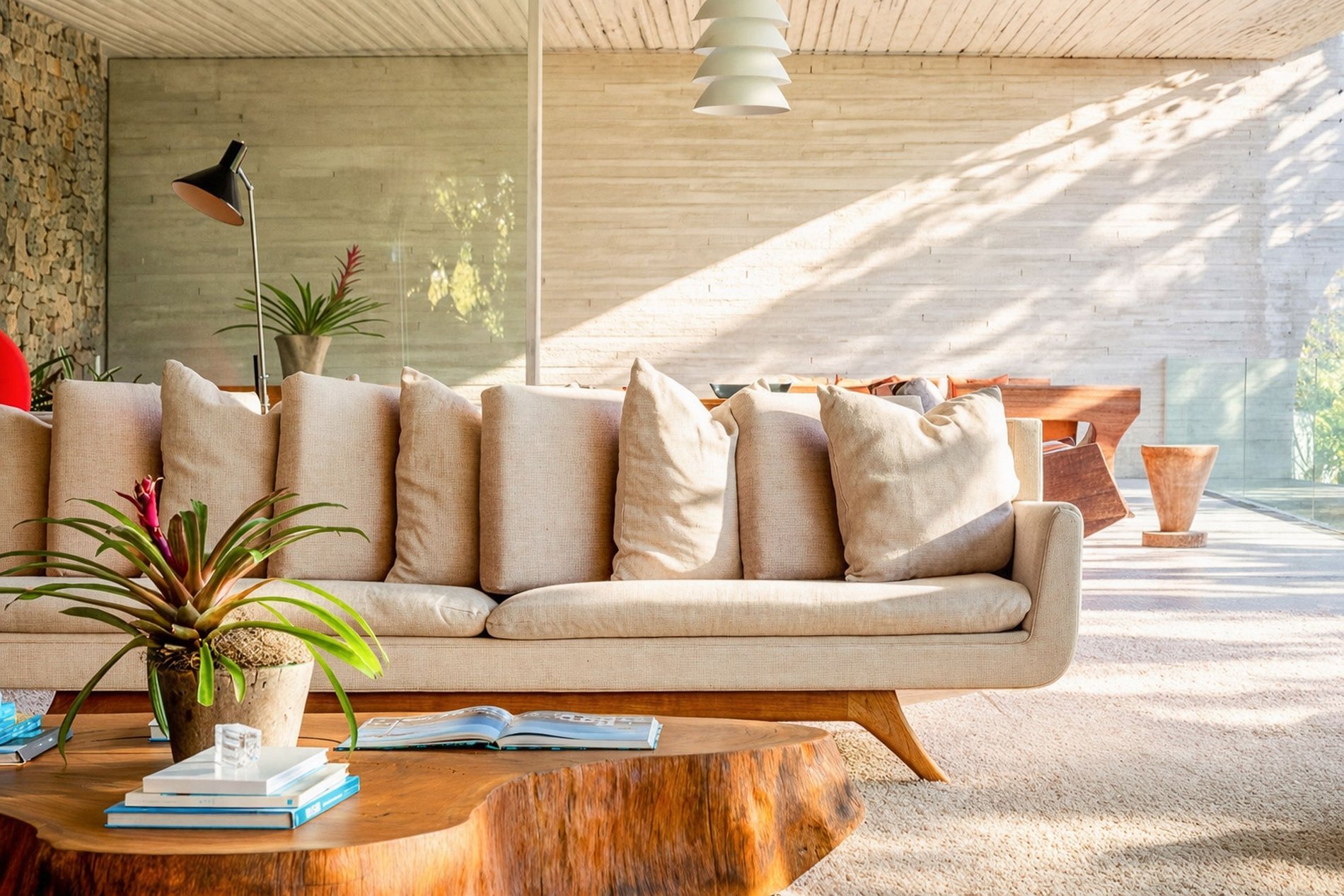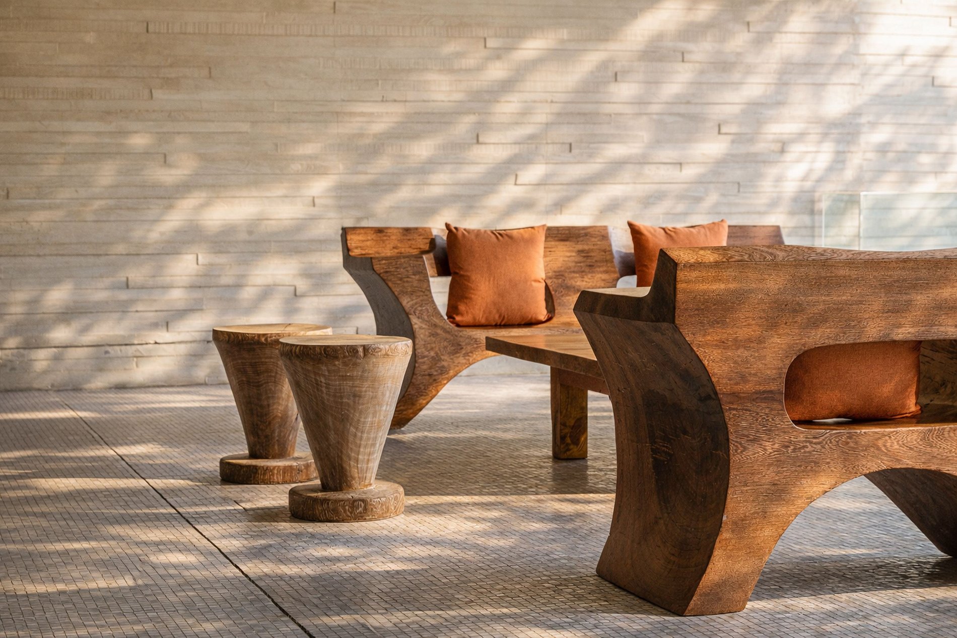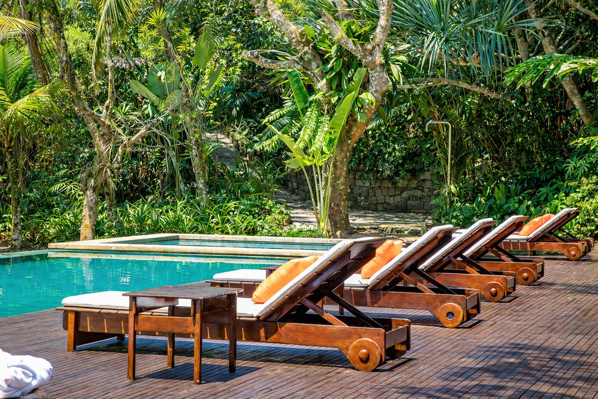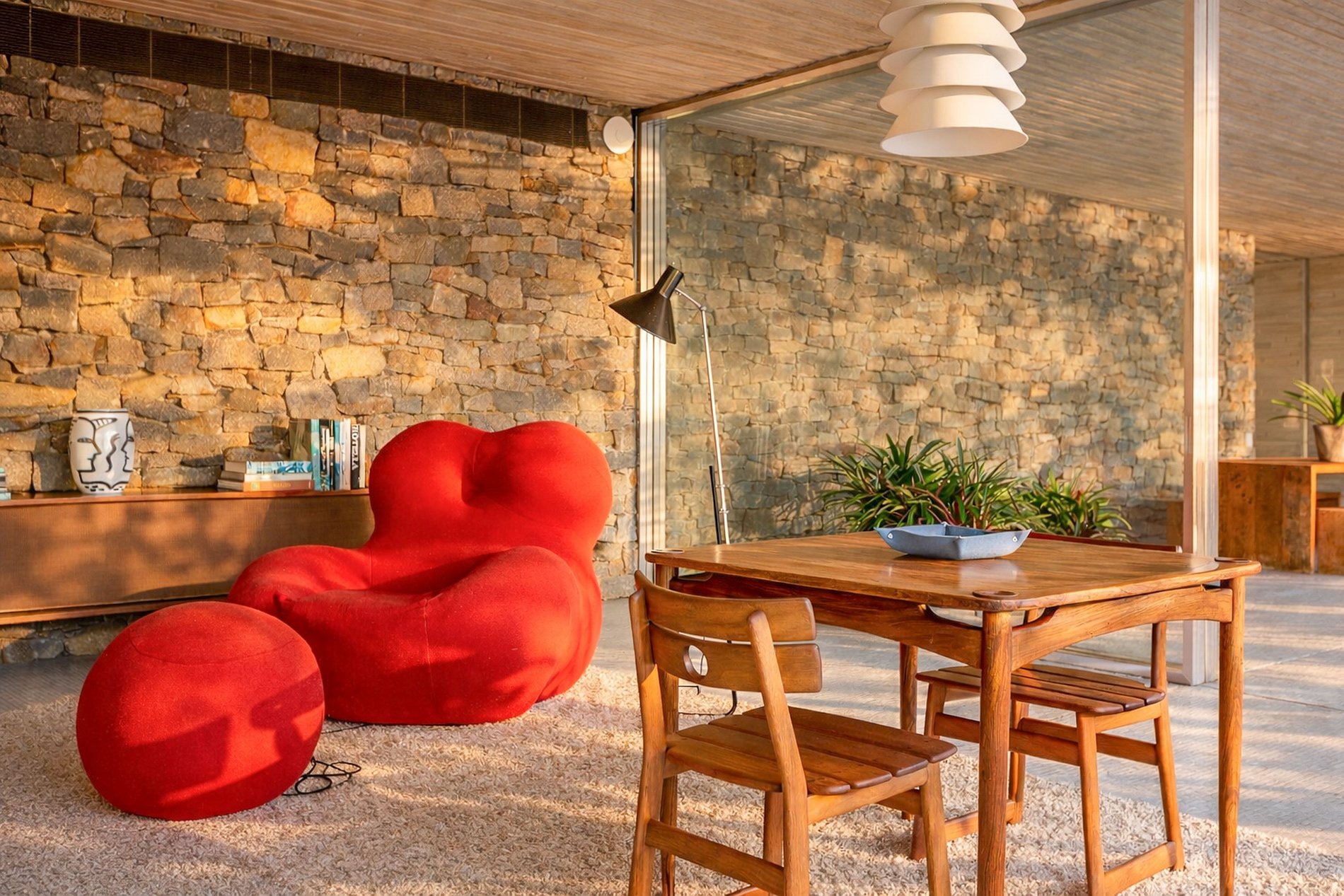 • Suite 5: With a queen-size bed, this suite has separate wardrobes and a private patio with forest views, offering complete privacy. The patio is decorated with natural stones and features loungers by Sérgio Rodrigues, creating a peaceful and comfortable retreat.