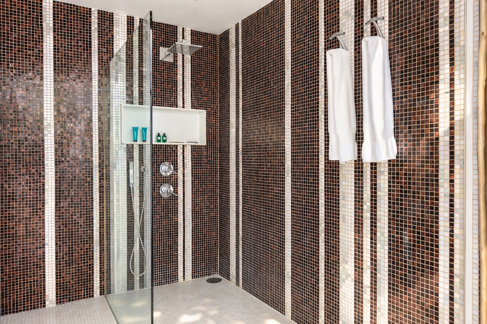 • Suite 2 and Suite 3: Both feature separate wardrobes, two extra single beds with pull-out beds, and bathrooms with Bisazza tiles, as well as Kohler suction toilets and bathtubs with stunning sea views.