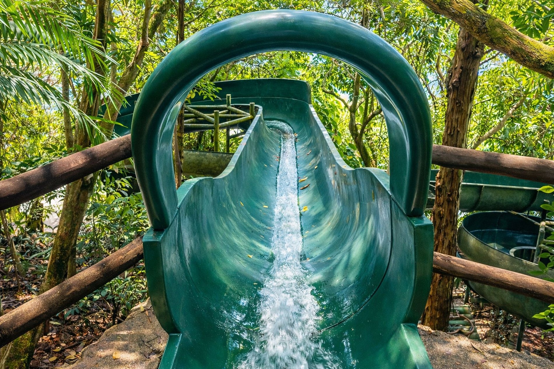 • Water Slide and Waterfall: A slide that descends from the middle of the forest and ends directly in the sea, along with a waterfall activated by a button, offering unparalleled fun and relaxation.