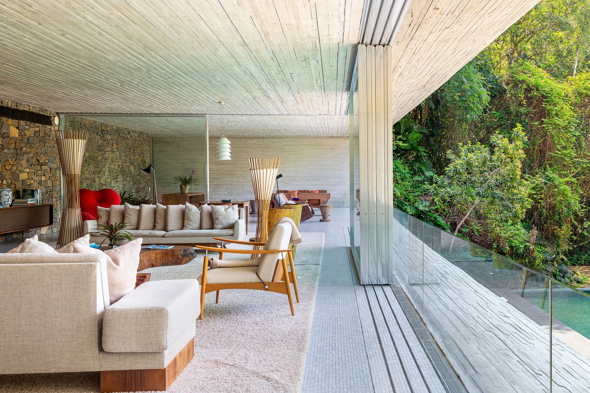 • Suite 5: With a queen-size bed, this suite has separate wardrobes and a private patio with forest views, offering complete privacy. The patio is decorated with natural stones and features loungers by Sérgio Rodrigues, creating a peaceful and comfortable retreat.