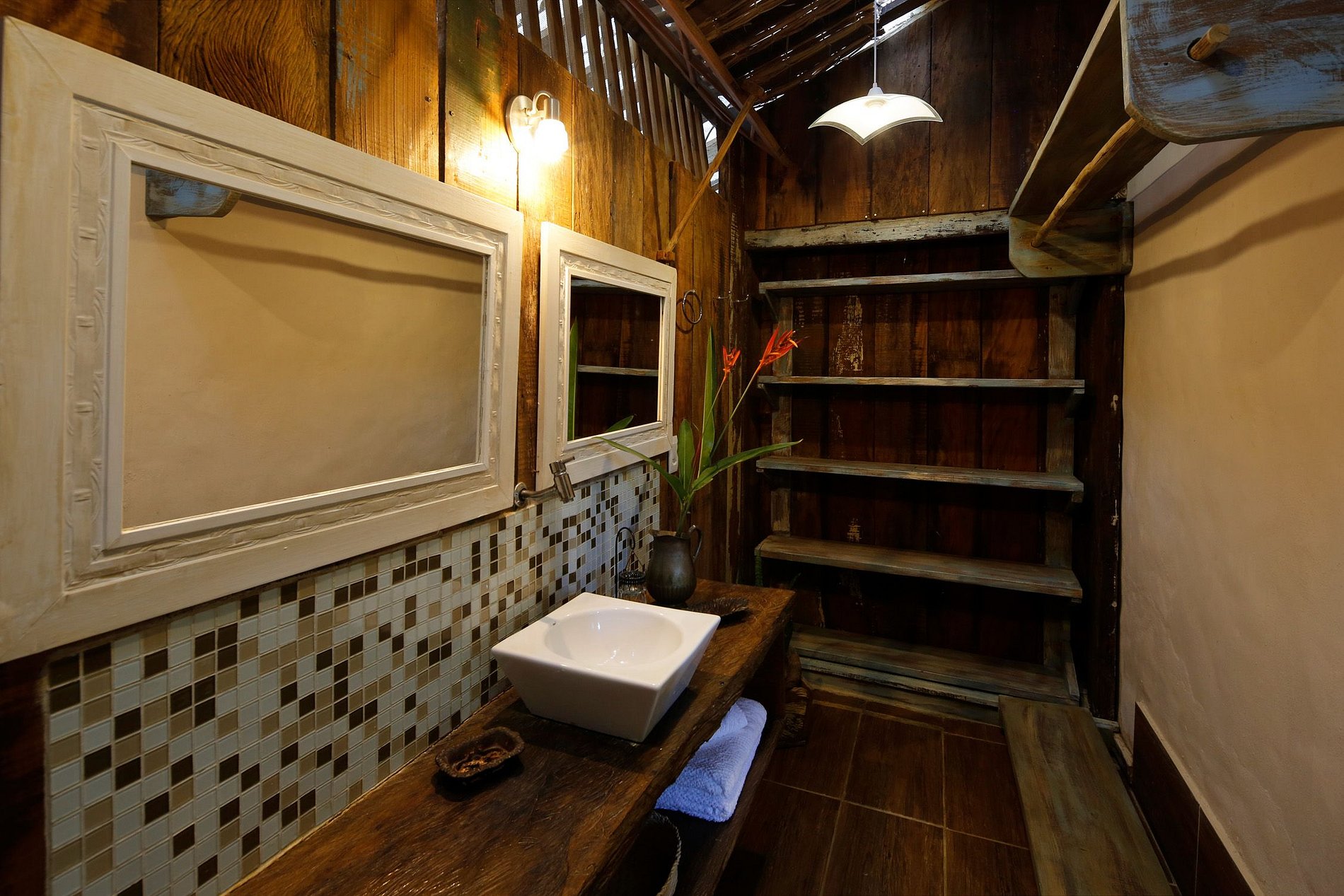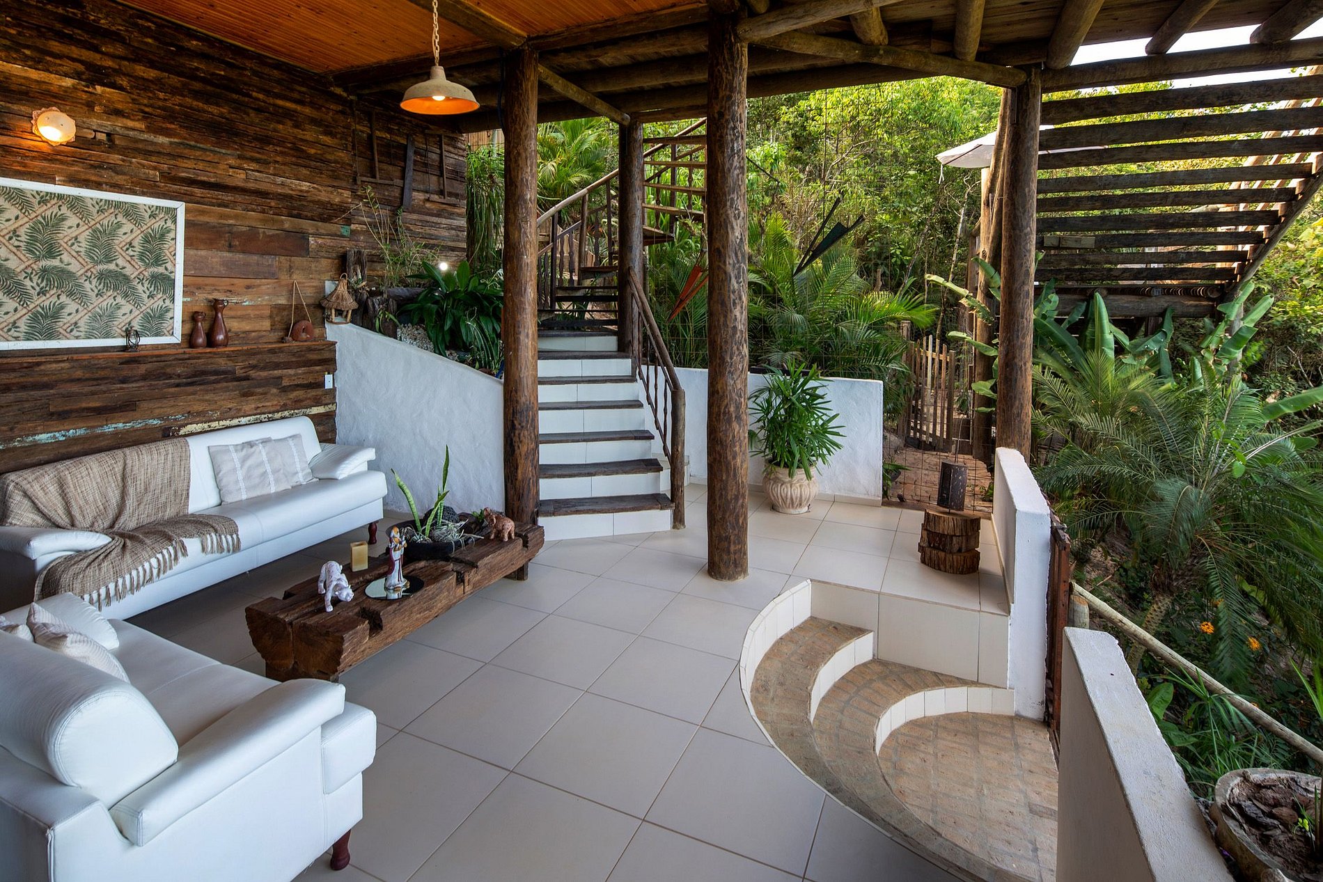 Climbing a beautiful outside wooden staircase, you will reach the upper floor with a breathtaking view surrounded by nature.