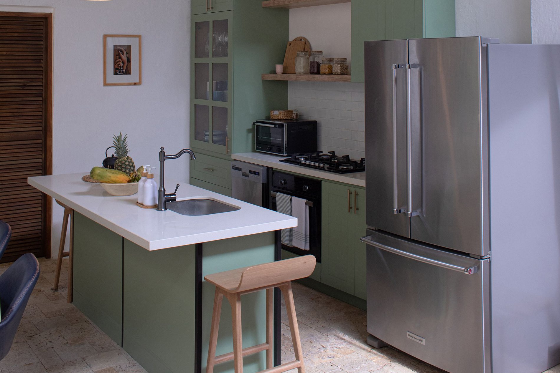 On the first floor are the social spaces, a living room with comfortable sofas, air conditioning which is connected to a beautiful fully-equipped kitchen, a high dining room table that flows with the decoration of the space. This level also houses a Jacuzzi, perfect for freshening up during hot Cartagena days, and enjoying a cold drink at any time of day.