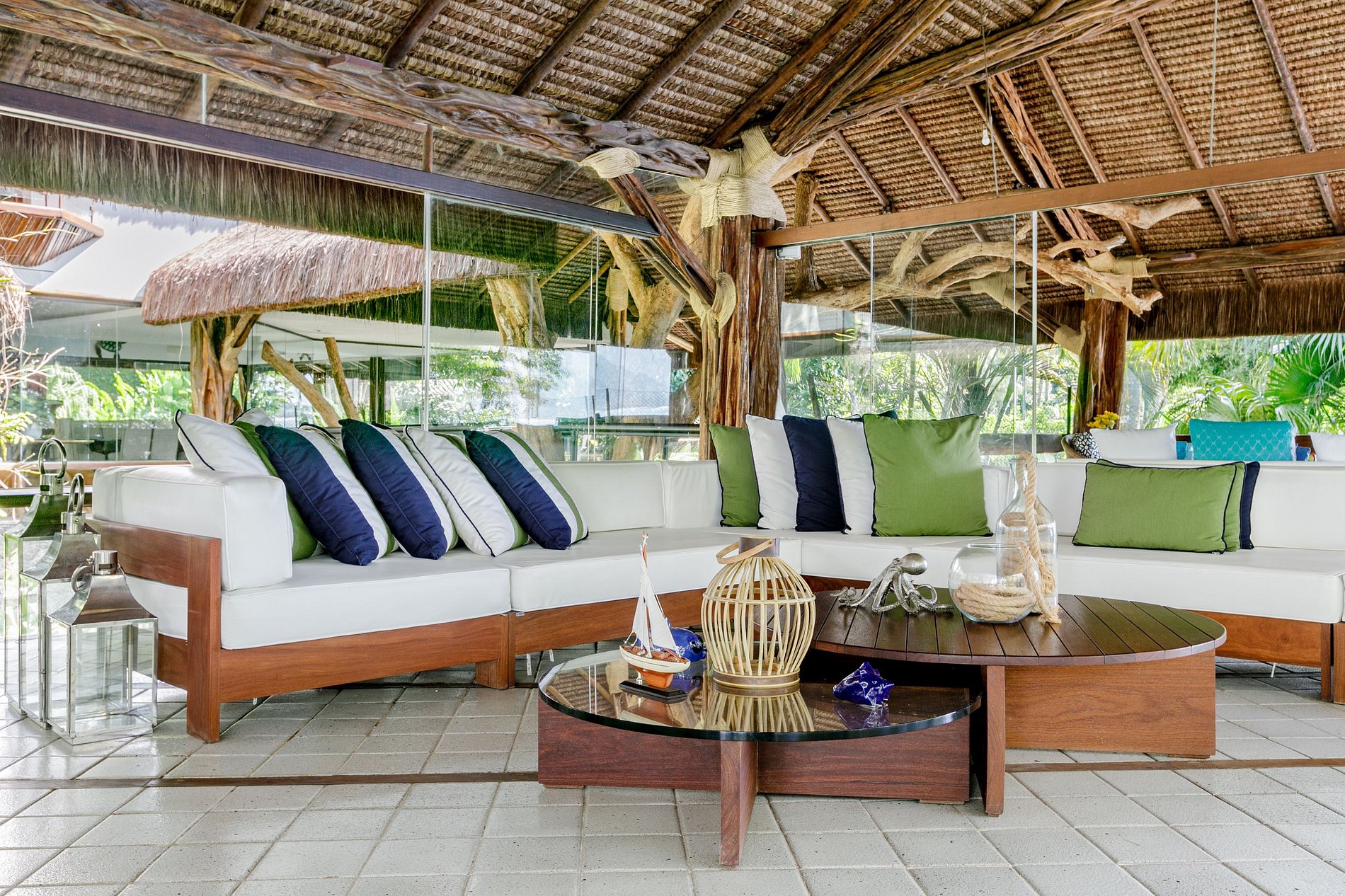 Authentic and Luxurious Sapê House built essentially of quari-quara wood with thatched roofs and is located in front of the sea, with a magnificent view of the bay of Mangaratiba. Surrounded by greenery, this beautiful luxury beach house has its own private beach, a pier, helipad, a magnificent swimming pool and jacuzzi.