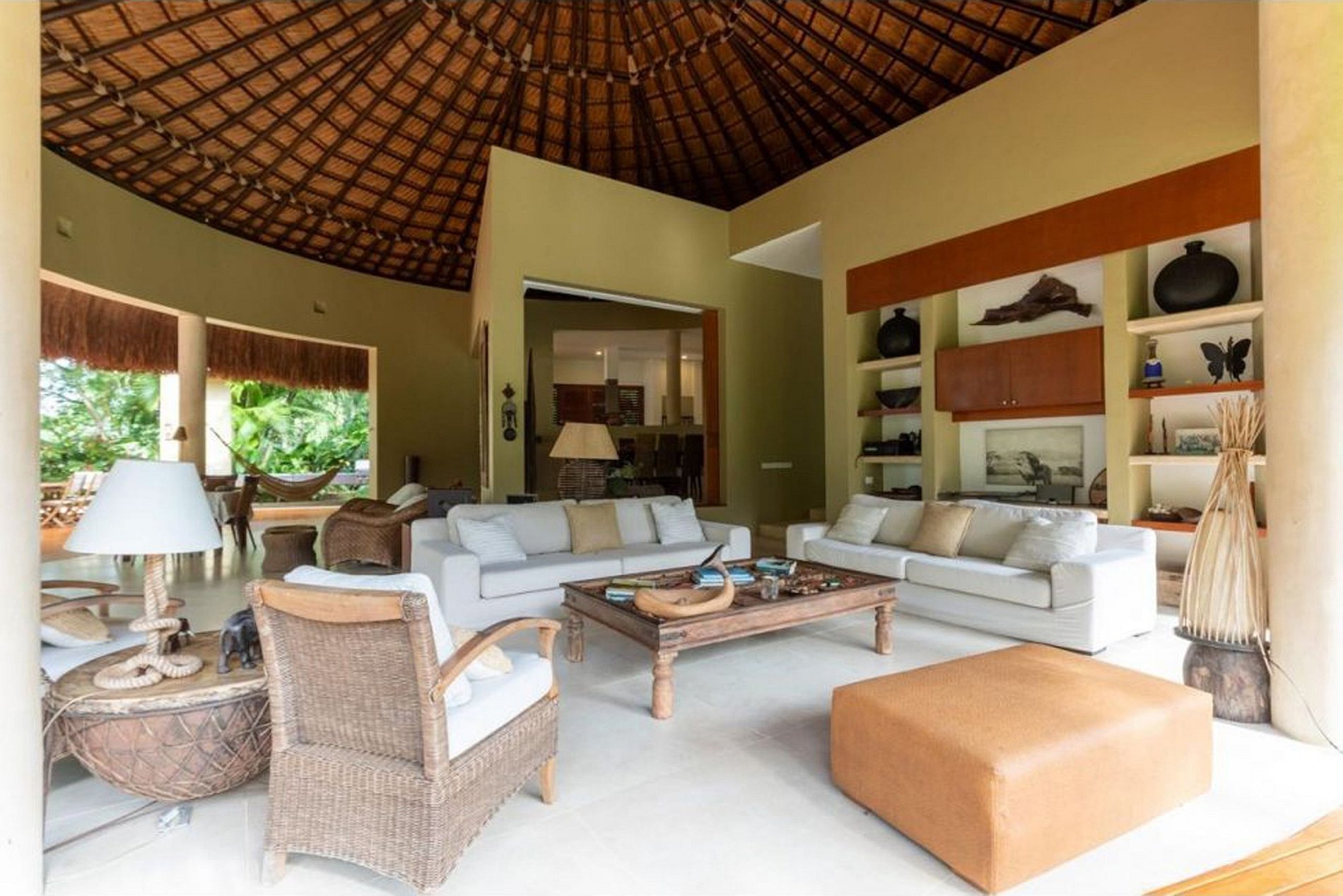 Outdoors, the experience continues with a swimming pool, jacuzzi, BBQ area, and a large palapa-style kiosk ideal for outdoor dining and entertaining. The layout encourages seamless indoor-outdoor living, perfect for families or groups seeking both comfort and tranquility. Maximum capacity is 16 guests. No parties allowed.