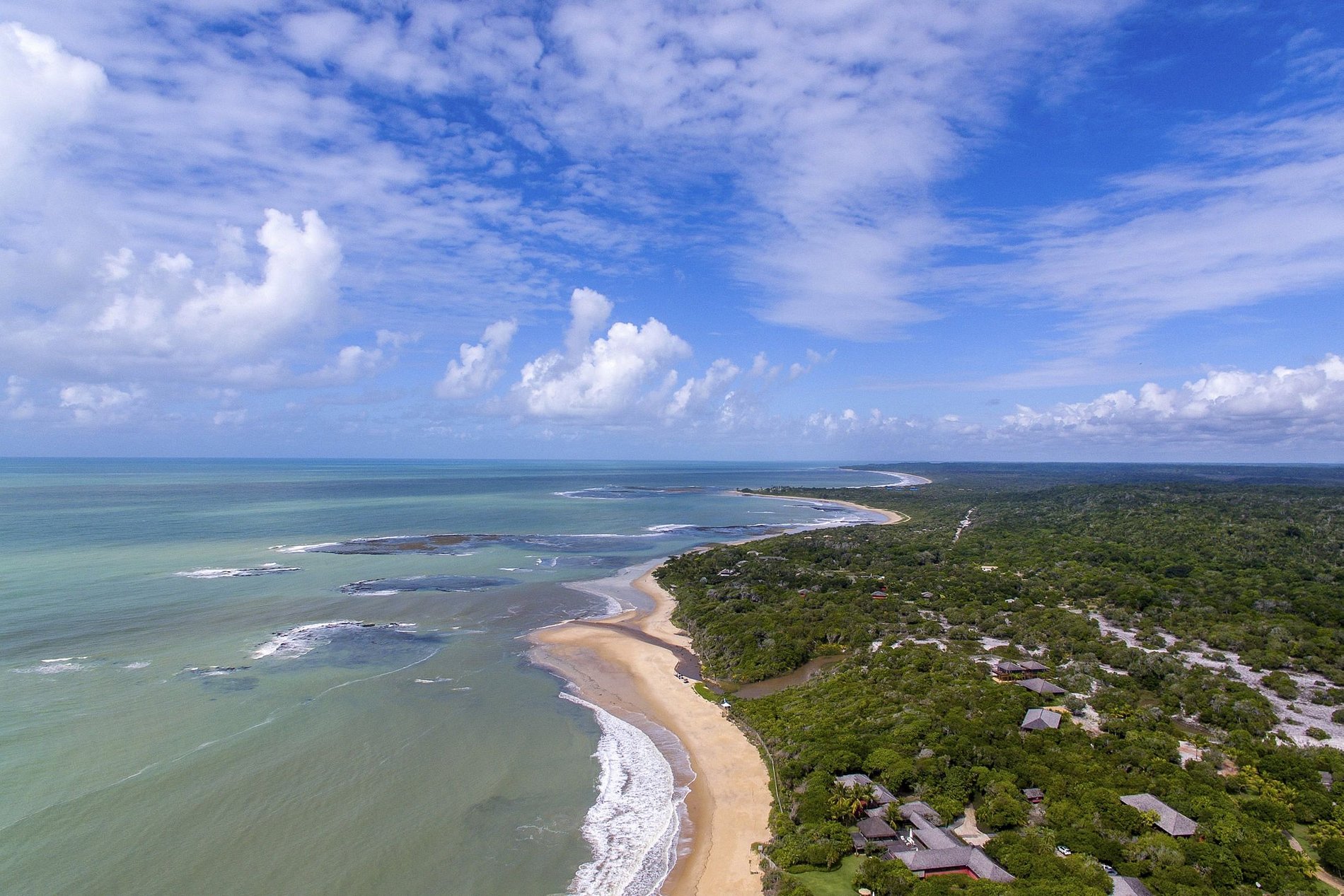 Magnificent foot-in-the-sand property with 5 houses and 10 suites in all. Marvel at all the architectural beauty of the houses and their social areas including a giant swimming pool, a large walkway lake, and much more attractive green surroundings, ensuring complete contact with the tropical nature of Trancoso.