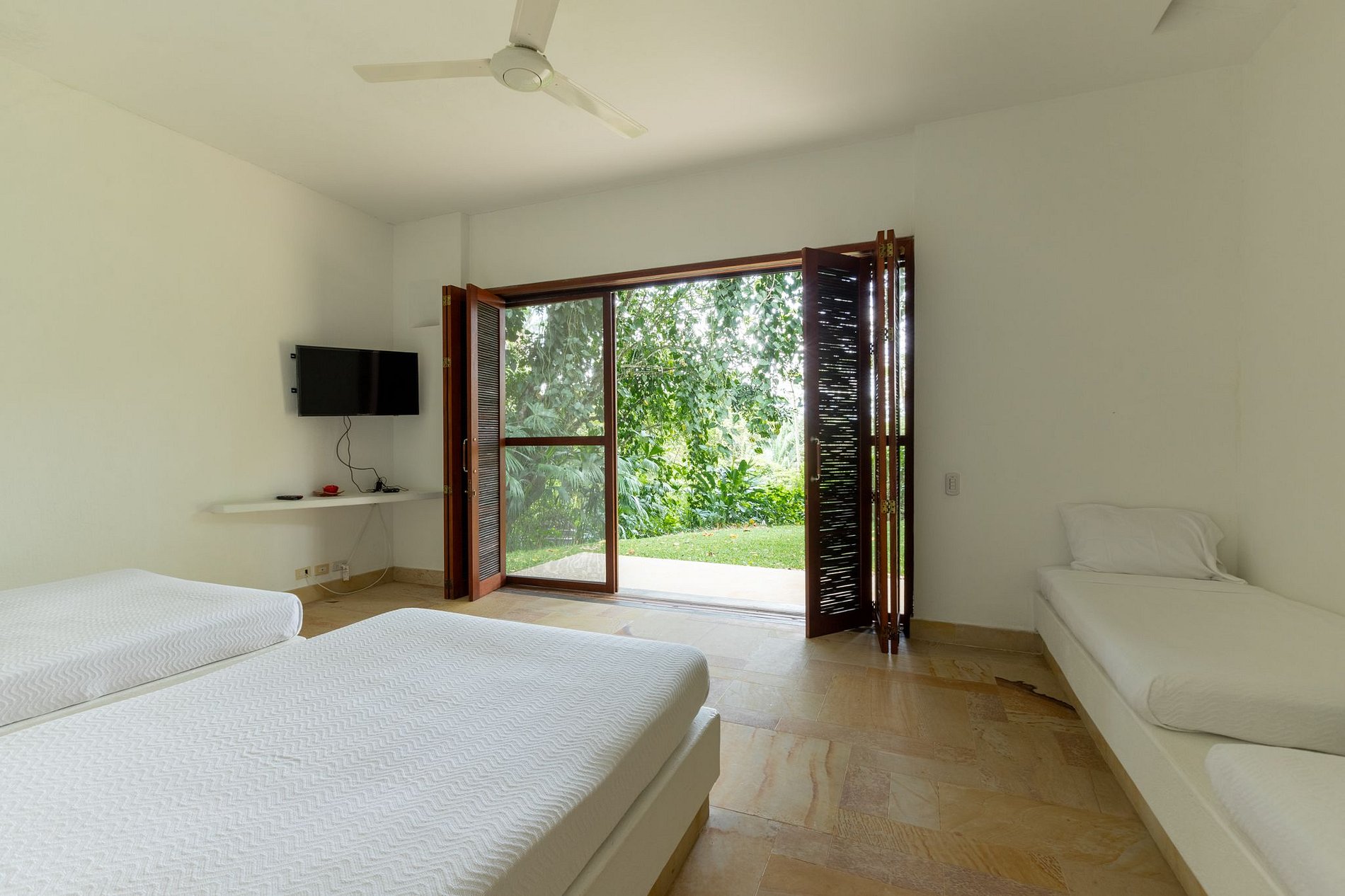 Its beautiful 4 suites provide a lot of comfort, all of them have access to the garden, cable TV and have the following arrangement:
