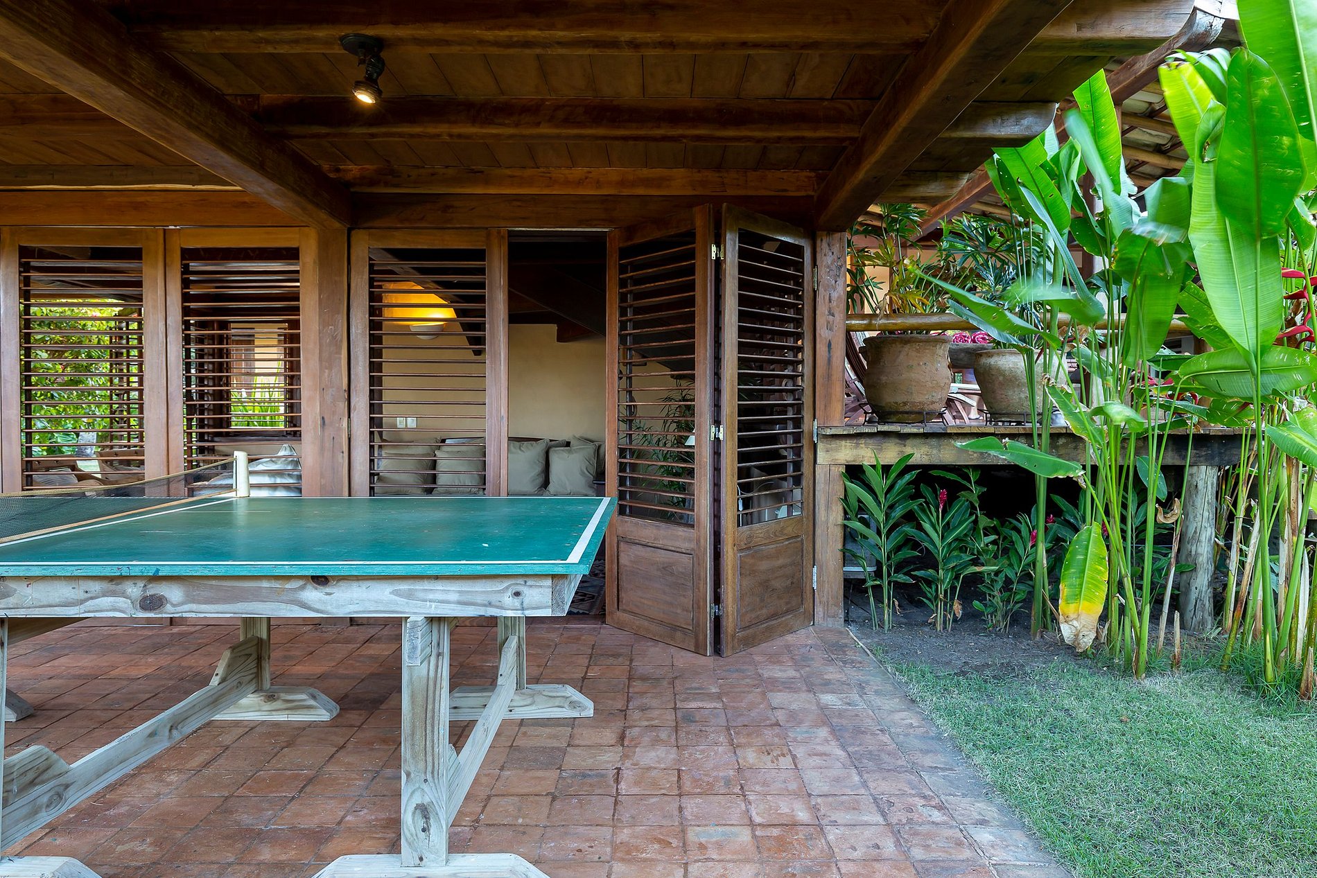 A part of the gazebo where there is another solarium sofa is open to the sky. Under the gazebo there is another room that can be used as an additional room or for games and relaxation where there is a ping-pong table. Near the path to the beach there is a fresh water shower.