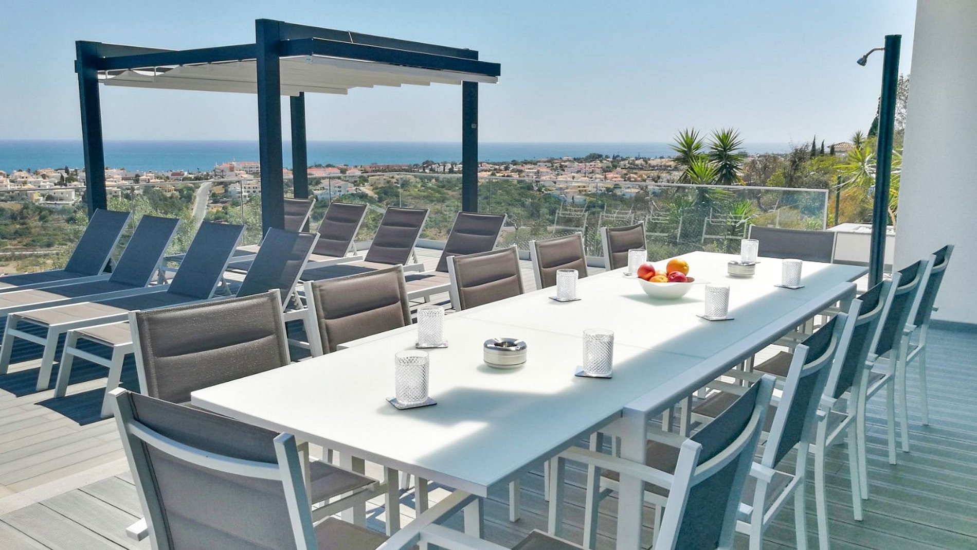 It was constructed in 2019 with clean, contemporary design and a wall of windows offers stunning, unspoilt views of Albufeira Marina and the ocean beyond, as one enters this two-story property.