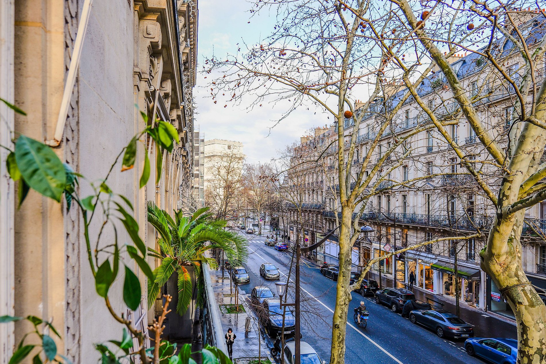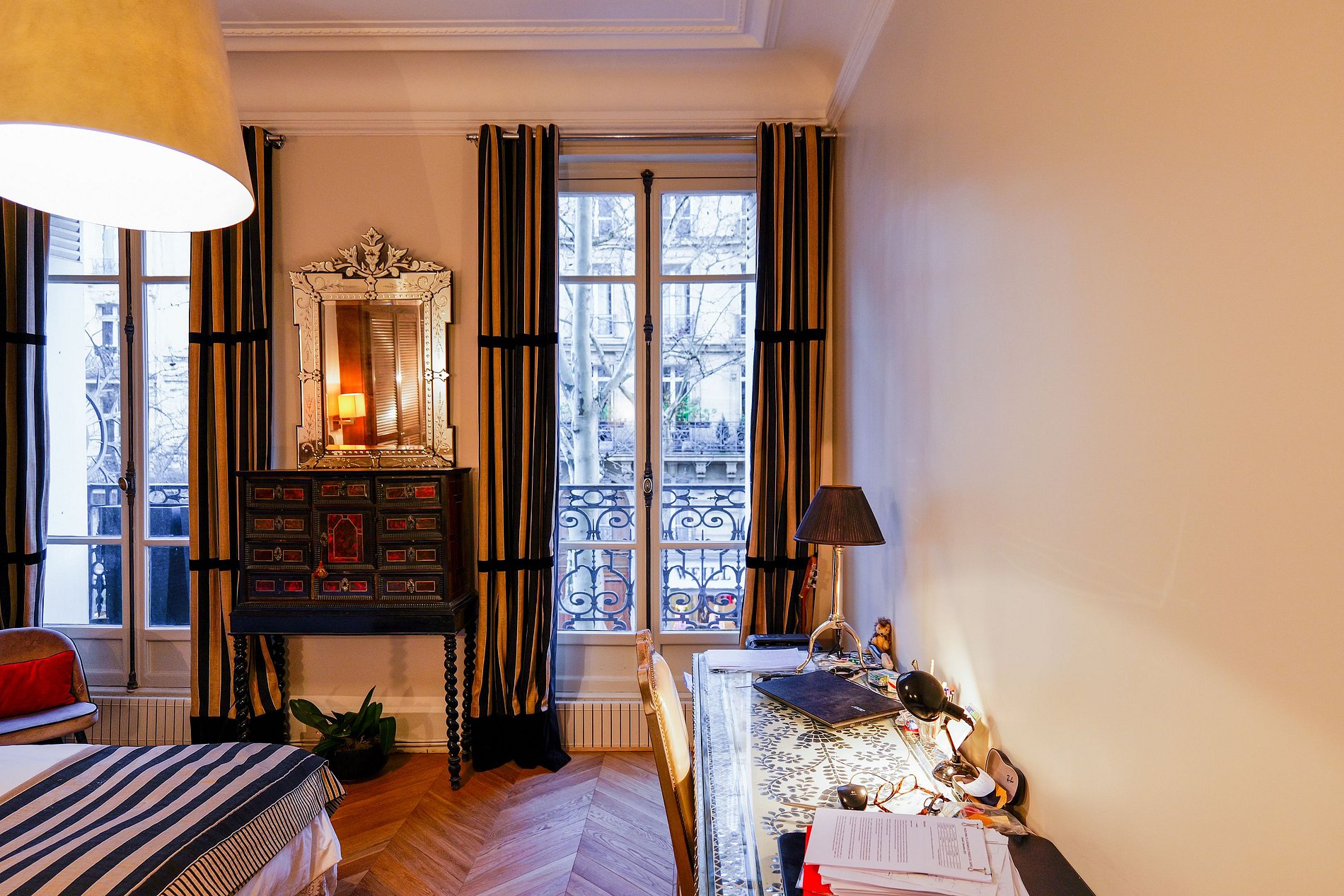 The apartment's large balcony is a feature unto itself, presenting a breathtaking view of the Arc de Triomphe. It's a space where the beauty of Paris is on full display, inviting residents to enjoy the city's skyline from a vantage point few can boast of. Whether it's for morning coffees or evening reflections, the balcony serves as a private overlook to one of the most celebrated monuments in the world.