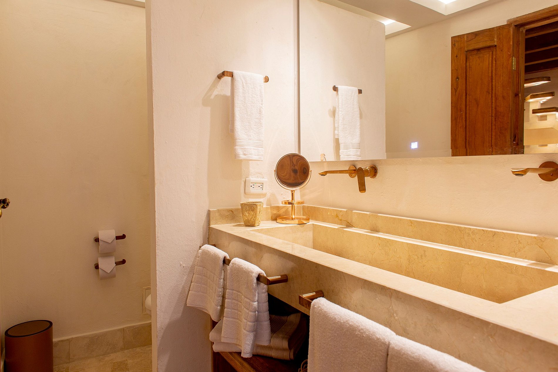 This opulent retreat features a spacious patio area with a refreshing pool, enveloped by swaying palm trees, and an enchanting rooftop sanctuary, hosting a lavish jacuzzi for up to 20 guests and an exquisite marble onyx bar. Indulge in memorable gatherings in the expansive dining room and bar, perfect for creating cherished moments with loved ones.