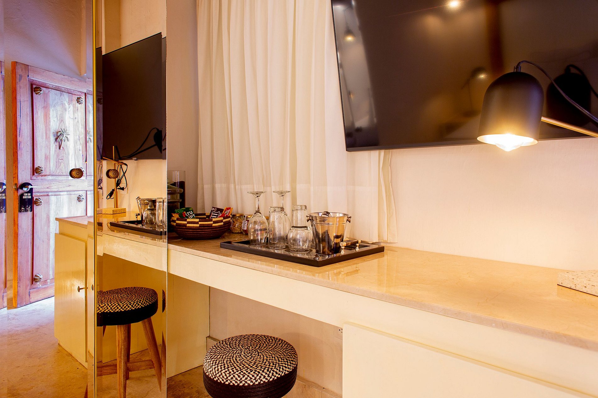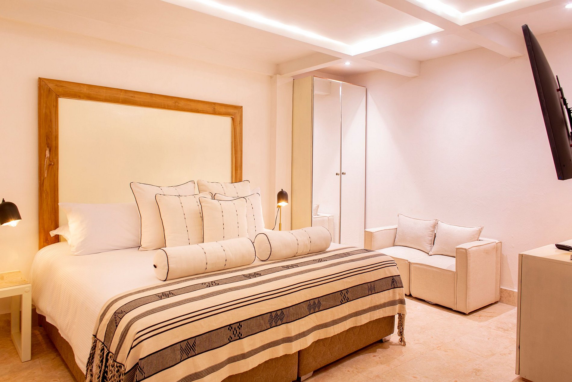 Discover an array of exclusive amenities, including a serene main pool in the patio area, a refined bar and dining space, a cozy living room, and an awe-inspiring rooftop retreat complete with a rejuvenating jacuzzi and a fully stocked bar.
