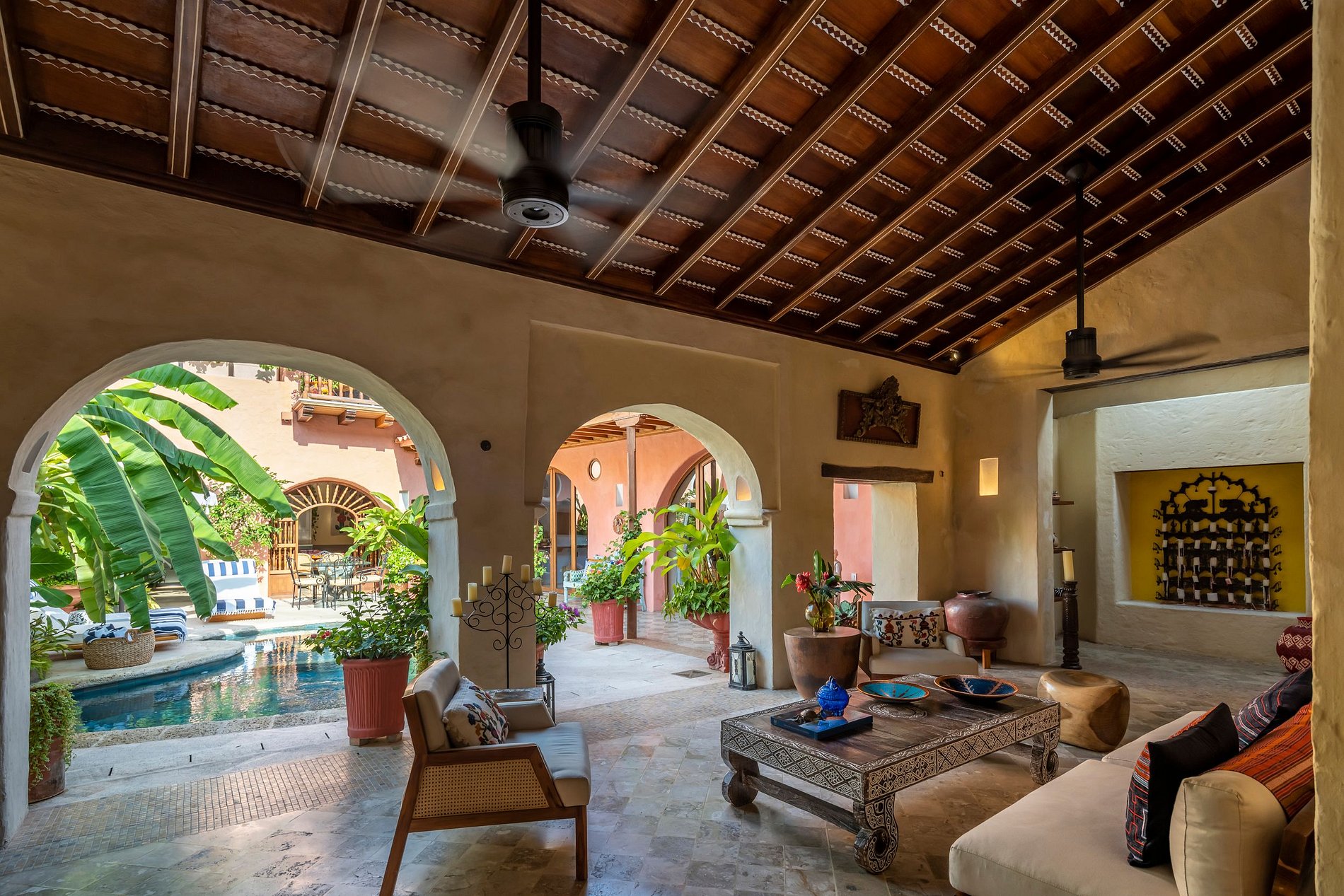 Recently remodeled yet retaining its colonial charm, the villa offers a unique blend of historic allure and modern comfort. From the grand entrance hall to the sun-drenched central courtyard with its inviting pool, every corner exudes a timeless elegance that captivates the senses.