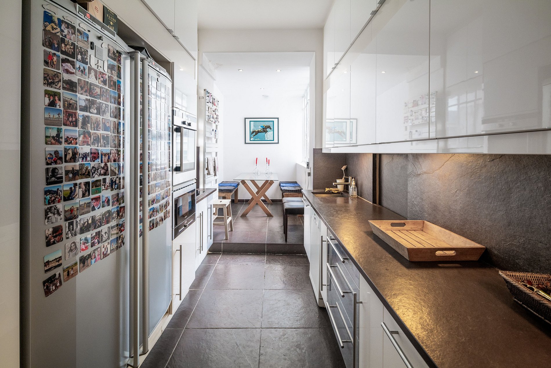 The kitchen is fully equipped with modern appliances and ample space, making it a delight for culinary enthusiasts to prepare gourmet meals. Its thoughtful layout and high-quality fixtures ensure that both functionality and style are paramount, providing an enjoyable cooking experience.