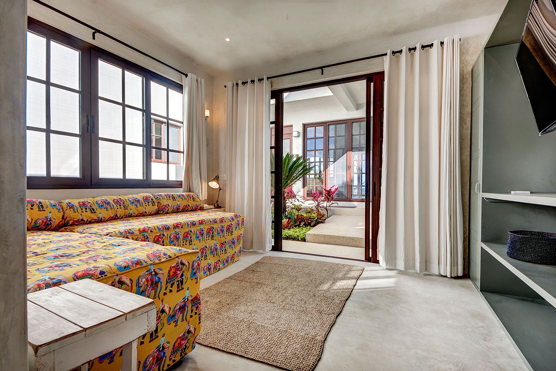 Head back through the courtyard and follow an eclectic water feature leading to a family room and bunkroom. Both have separate entrances with a connecting bathroom stunningly decorated with extraordinary handmade tiling. These rooms provide the most serenity of all the spaces in the home.