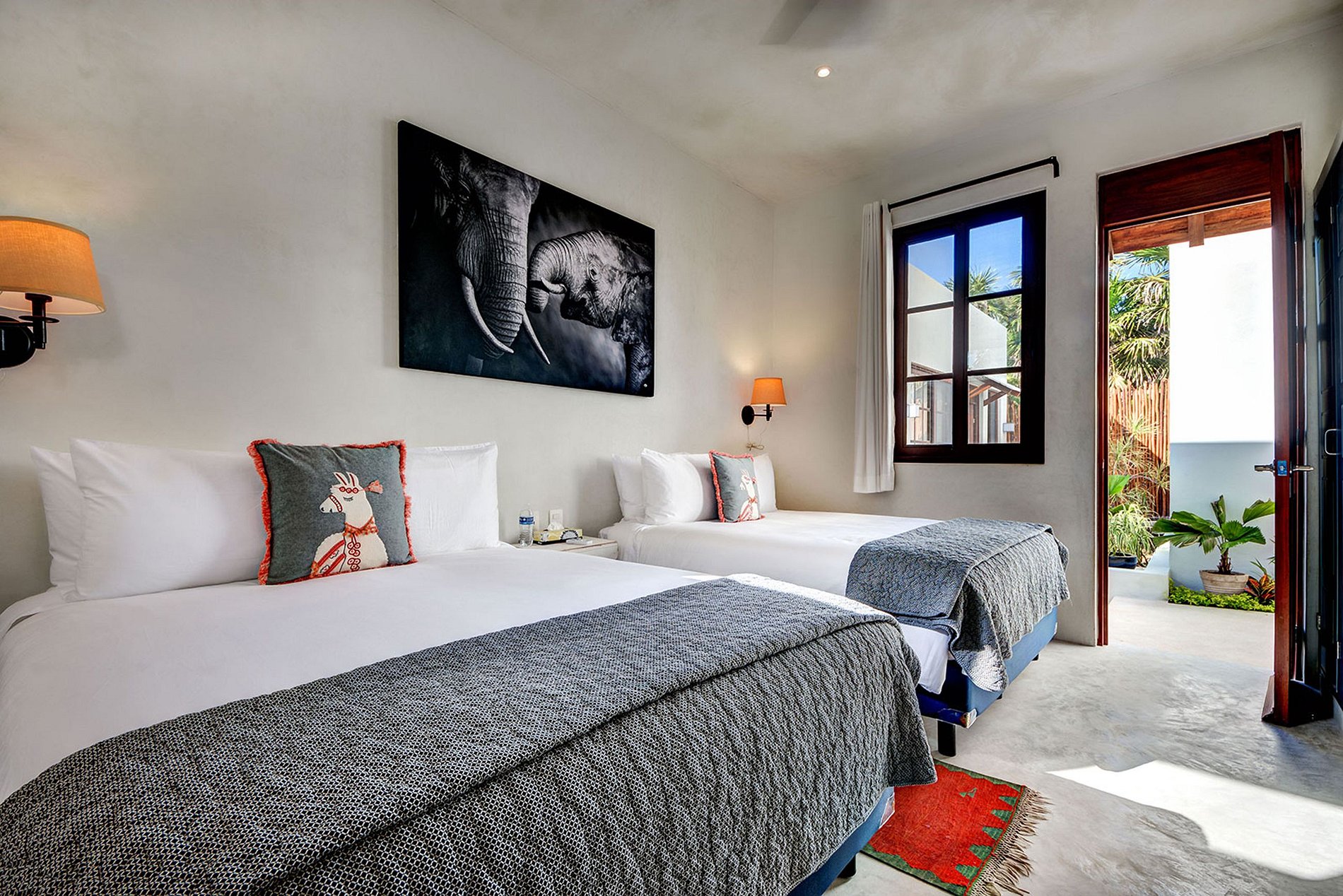 2 Queen beds, Air conditioning, Ceiling fan, Shared bathroom, Wifi access