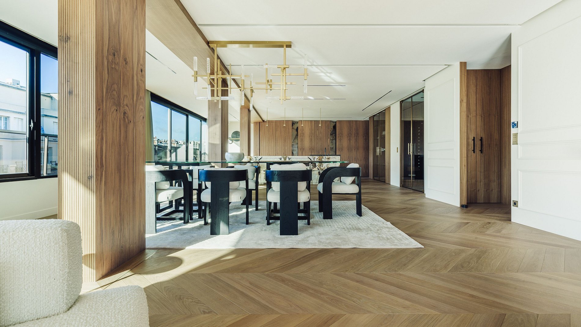 Nestled on the prestigious Avenue Montaigne, this 480 sqm penthouse stands as one of the most amazing residences in Paris. With a 45 sqm terrace that offers a direct and unobstructed view of the Eiffel Tower, the apartment captures the essence of luxury living in the heart of the French capital.