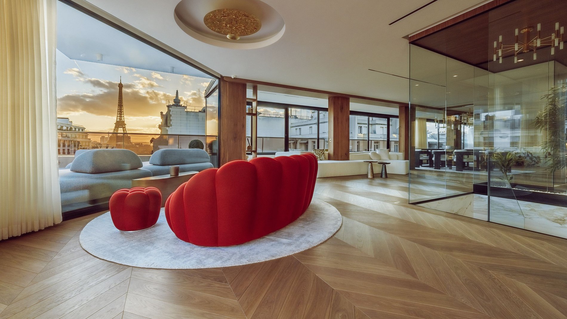 Nestled on the prestigious Avenue Montaigne, this 480 sqm penthouse stands as one of the most amazing residences in Paris. With a 45 sqm terrace that offers a direct and unobstructed view of the Eiffel Tower, the apartment captures the essence of luxury living in the heart of the French capital.