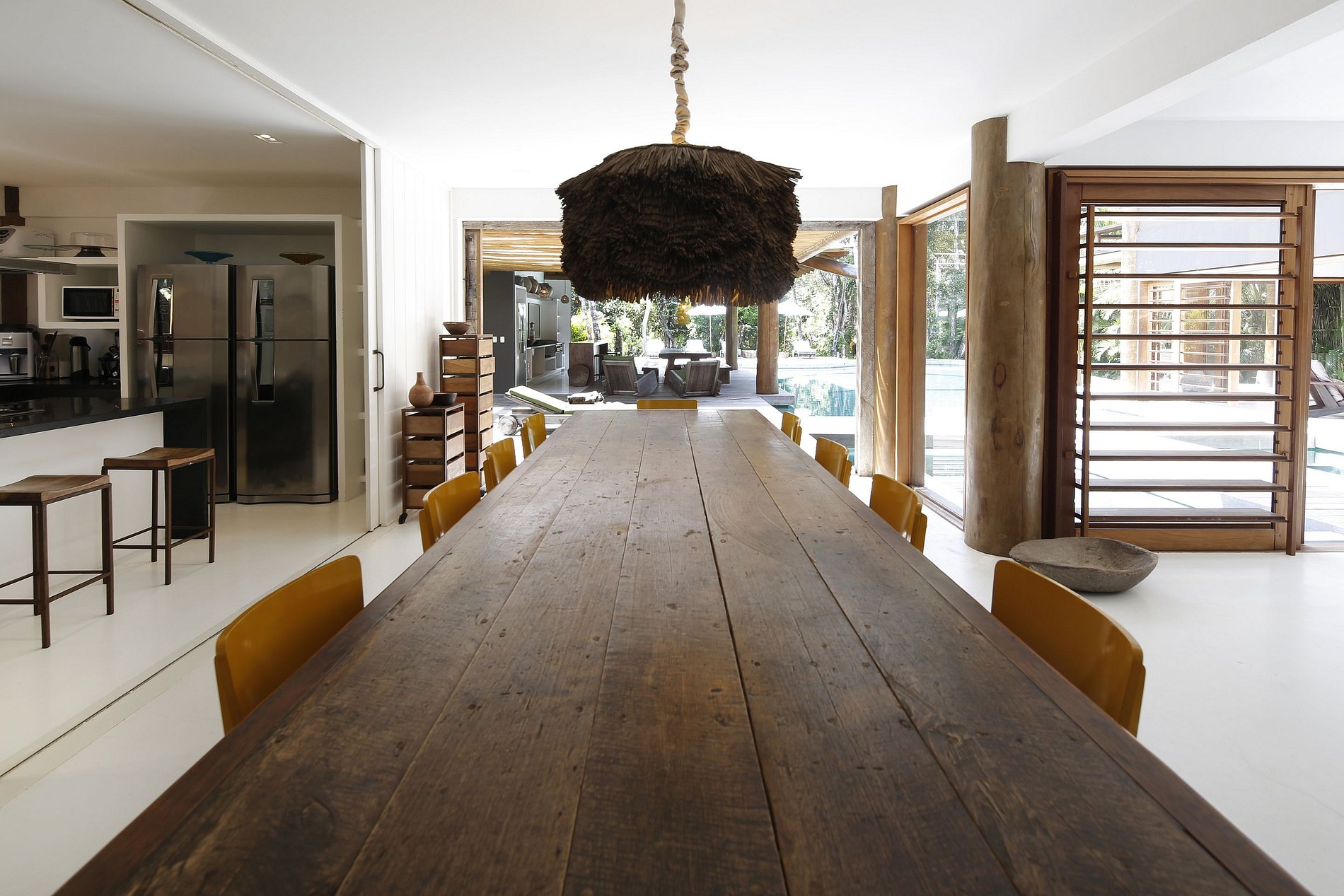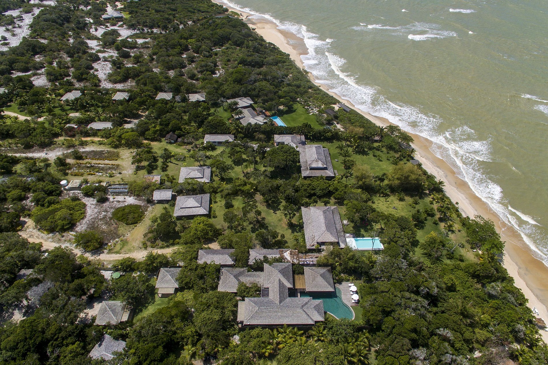 Discreet and classy bungalows, of good proportion, have a total of three more bedrooms with en-suite bathroom in total. The property is erected around a pool of subtle curves, with translucent water reflecting the golden light of the southern Bahia sun. Next to this magical pool, the vast gourmet area offers space and practicality to organize brunches, lunches, and dinners a stone's throw from the beach.