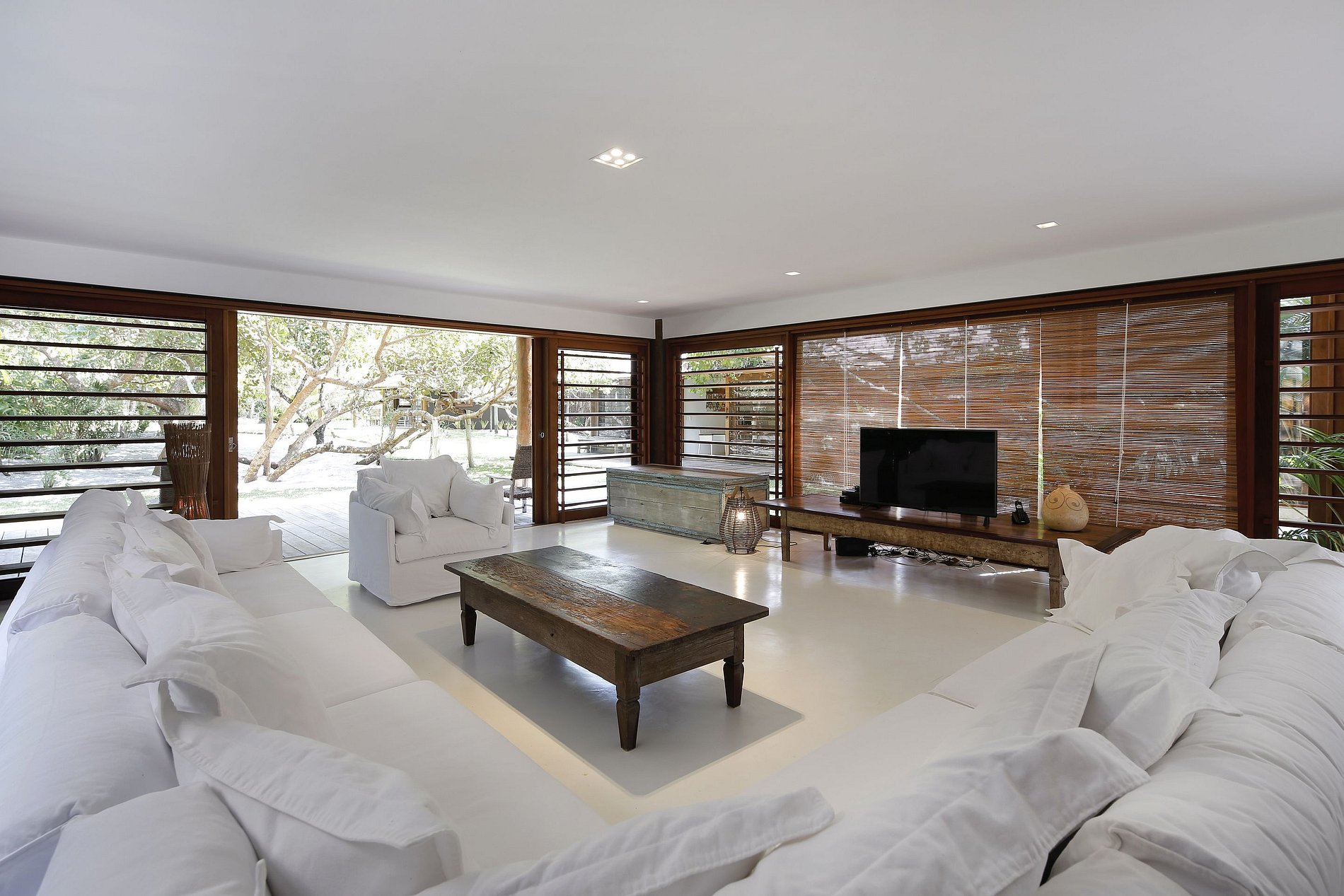 The beach is another asset of this exceptional property. The delicate pergola of the beach lounge, with long chairs, lie on in the white sand is by the side of a crystal clear water, warm at any time of the year. Itapororoca is one of the most exclusive beaches in Trancoso, a 7km long beach with few houses and large preserved areas, access is via the beach or a dead-end road with 24h surveillance access.