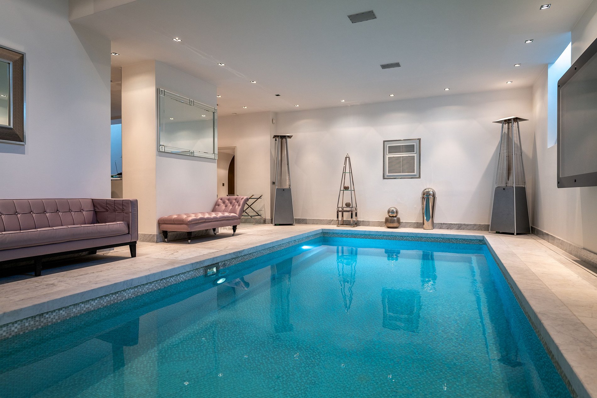 For ultimate relaxation and indulgence, the mansion boasts a private spa featuring a heated pool, massage room, and hammam. The home cinema offers a perfect setting for movie nights and entertainment.