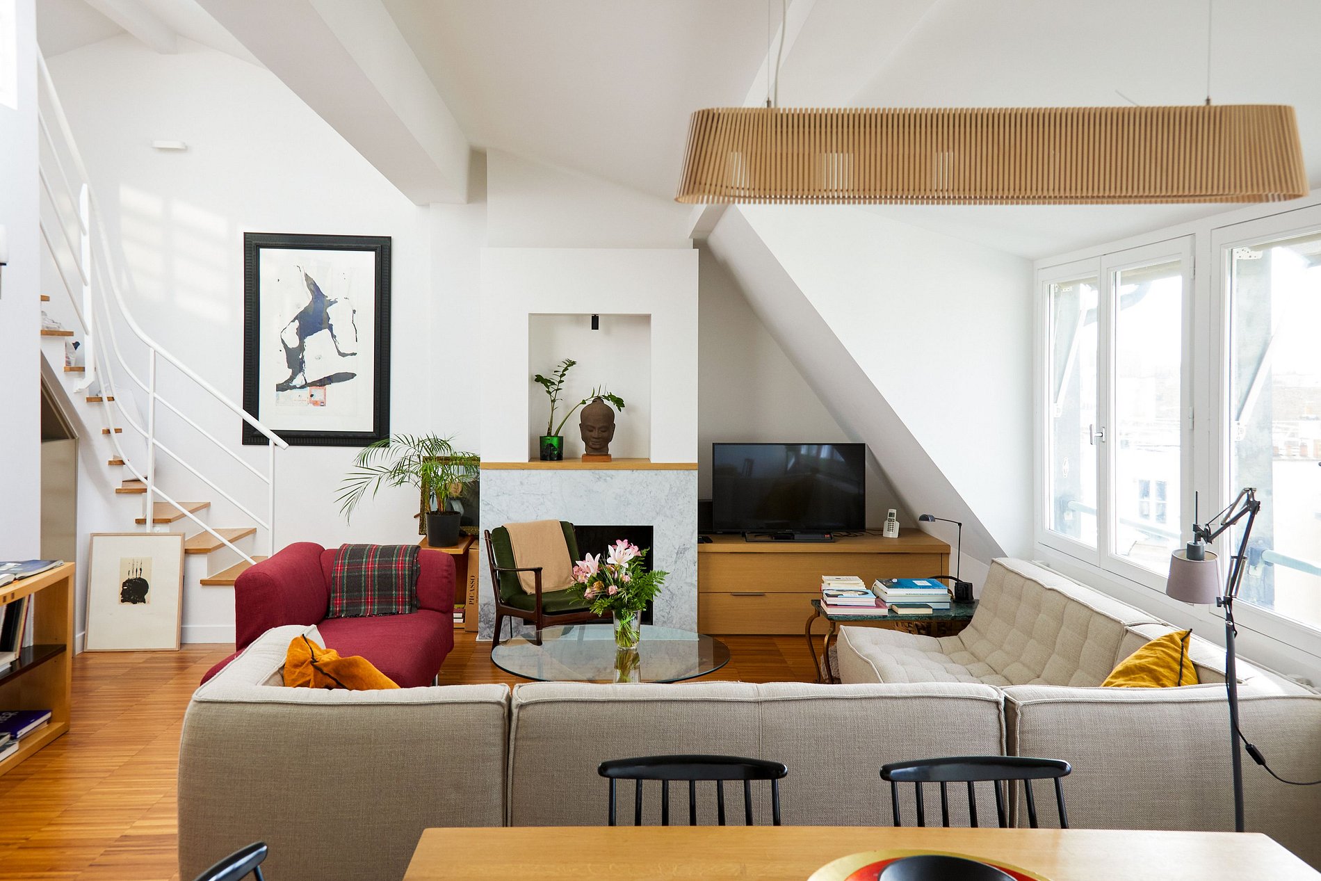 Nestled in the Batignolles district, this 120 sqm triplex offers an exceptional living environment on the heights of Paris. Spread over the 7th, 8th, and 9th floors, the apartment reveals breathtaking views of the rooftops of the City of Light and its iconic monuments.