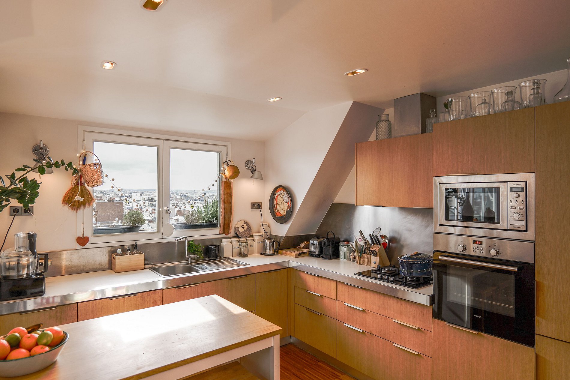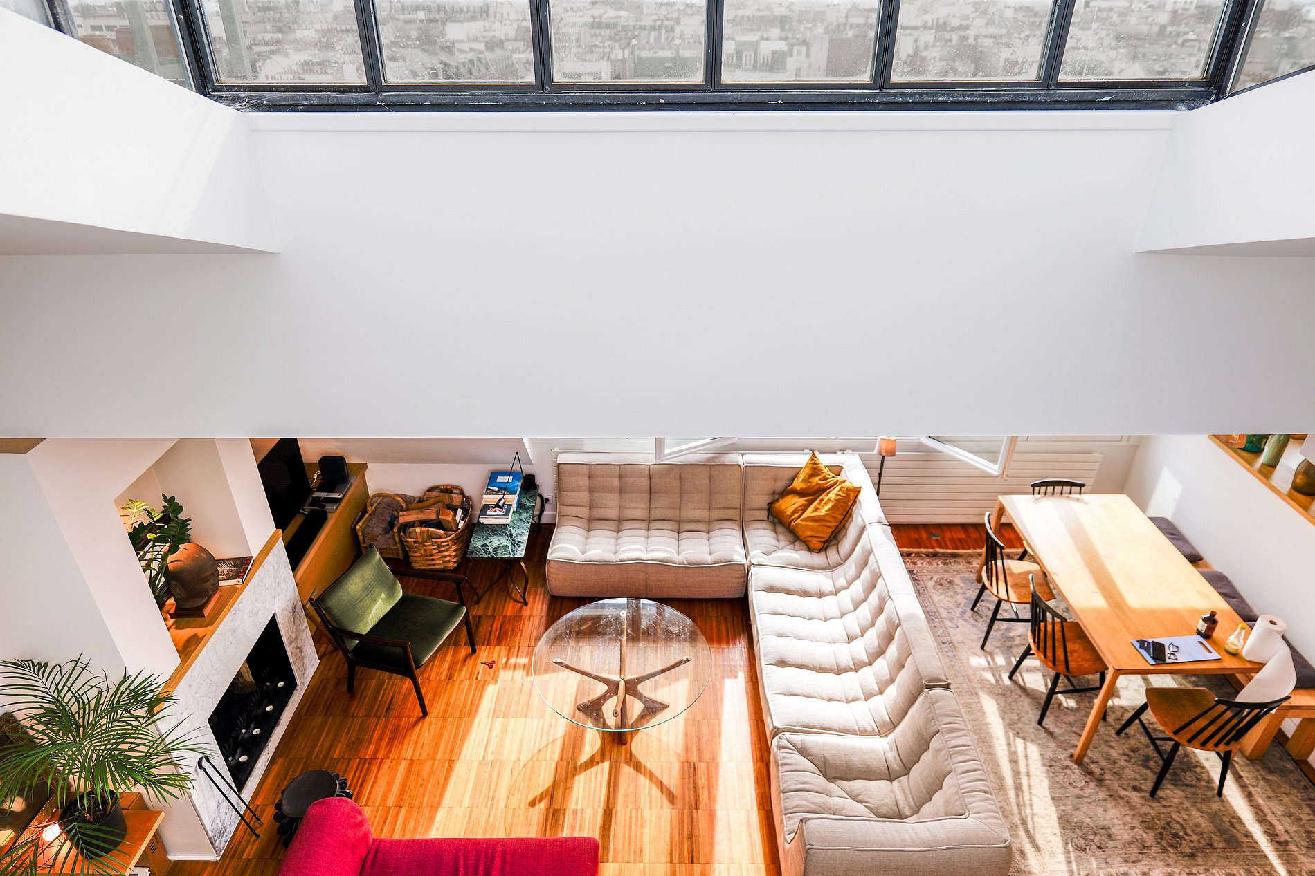 An elegant staircase leads to the 9th floor, where a glass lookout on the sides and above offers a breathtaking panoramic view of all of Paris. This unique vantage point allows you to admire the city from a new angle, making this apartment a true gem in the heart of the French capital.
