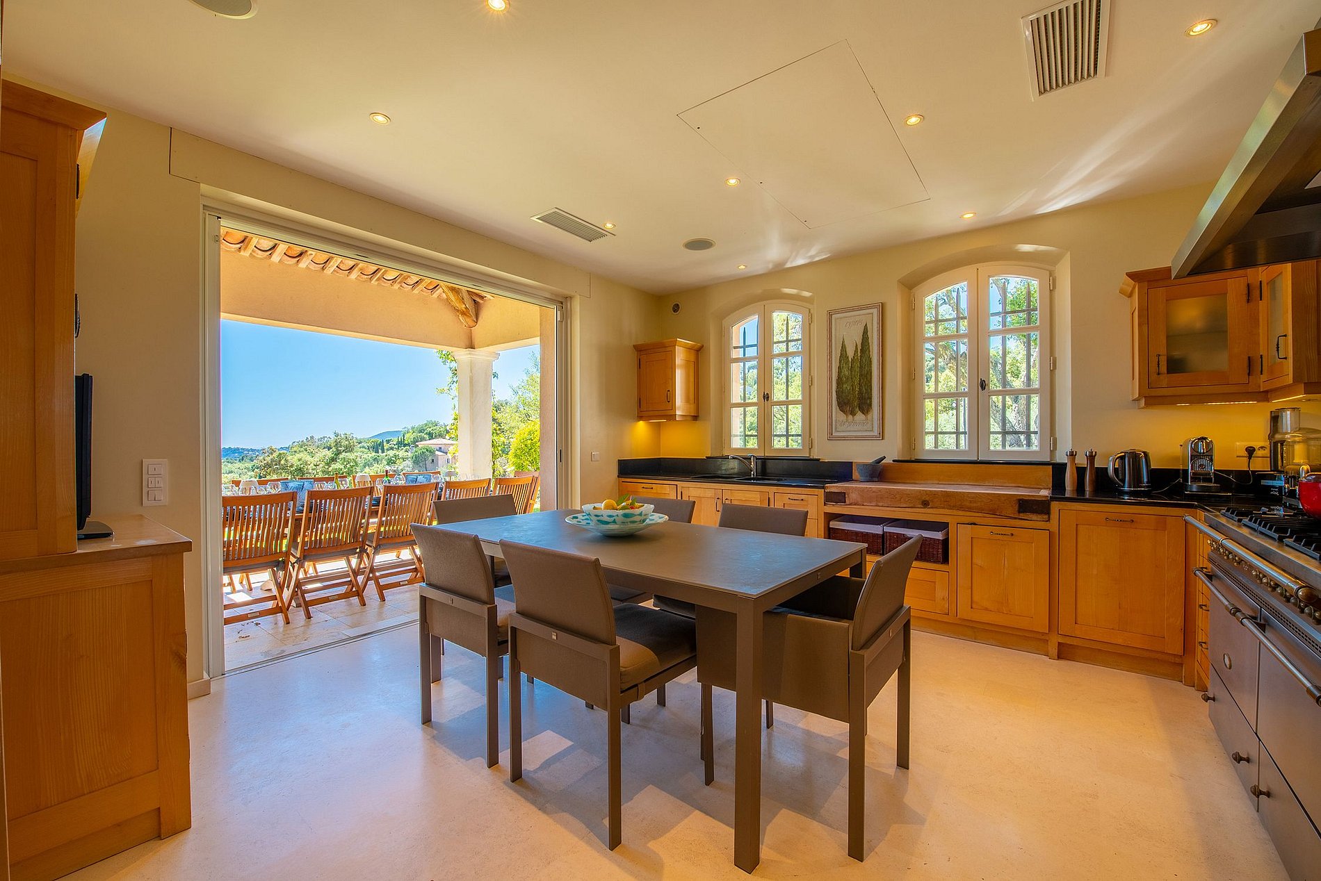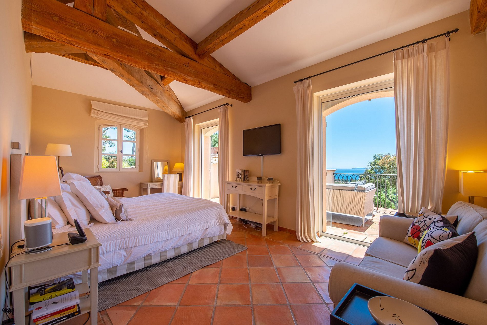 Located on the heights of La Croix-Valmer, spread over 400 m2, this very spacious villa has three floors with bedrooms and a large common area.